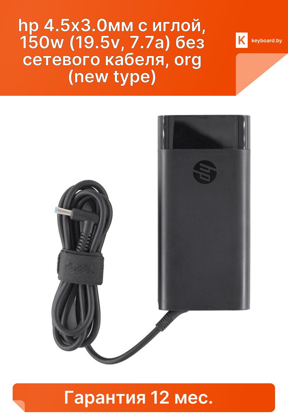 Блок питания hp 4.5x3.0мм с иглой, 150w (19.5v, 7.7a) без сетевого кабеля, org (new type)