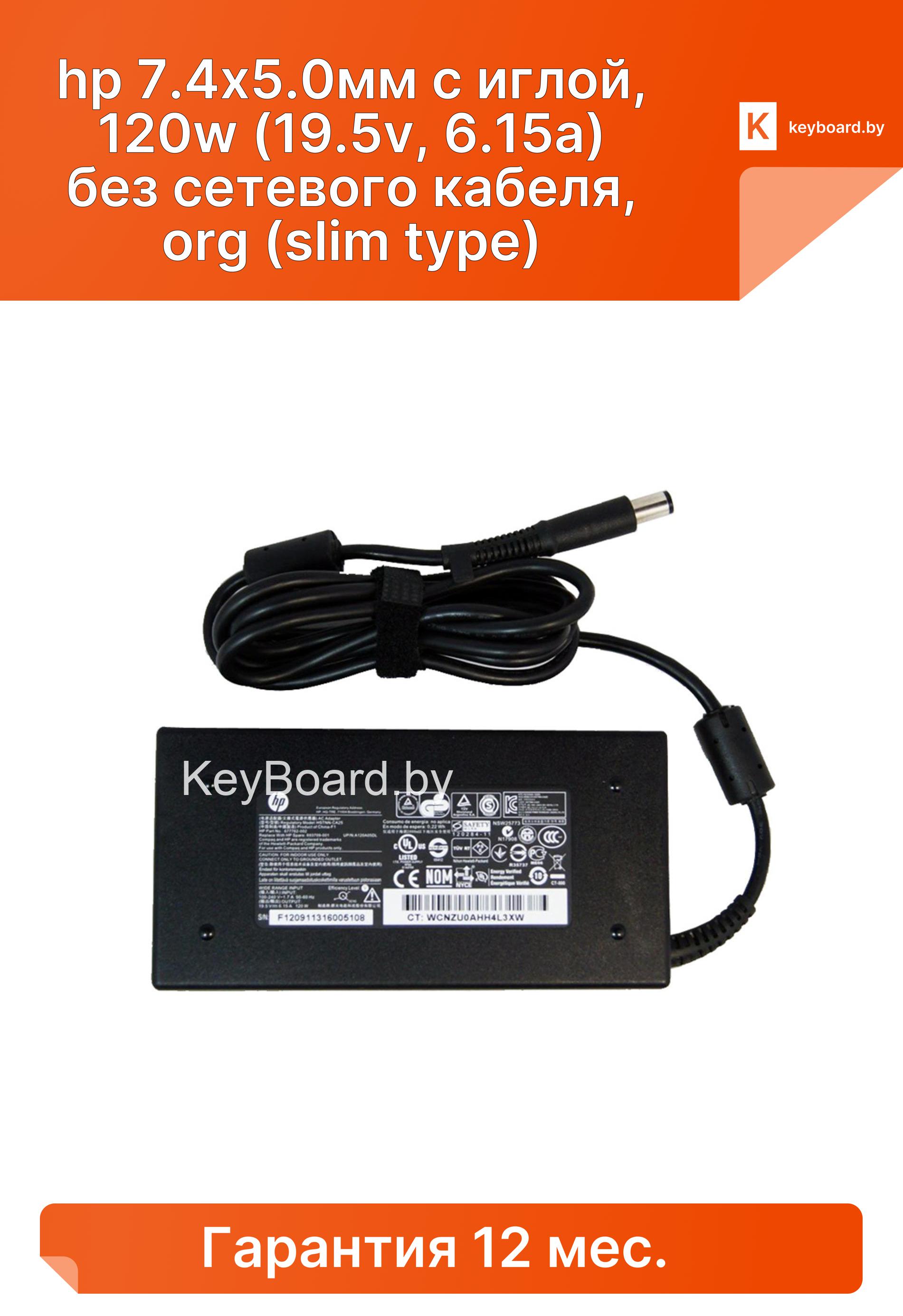 Блок питания hp 7.4x5.0мм с иглой, 120w (19.5v, 6.15a) без сетевого кабеля, org (slim type)