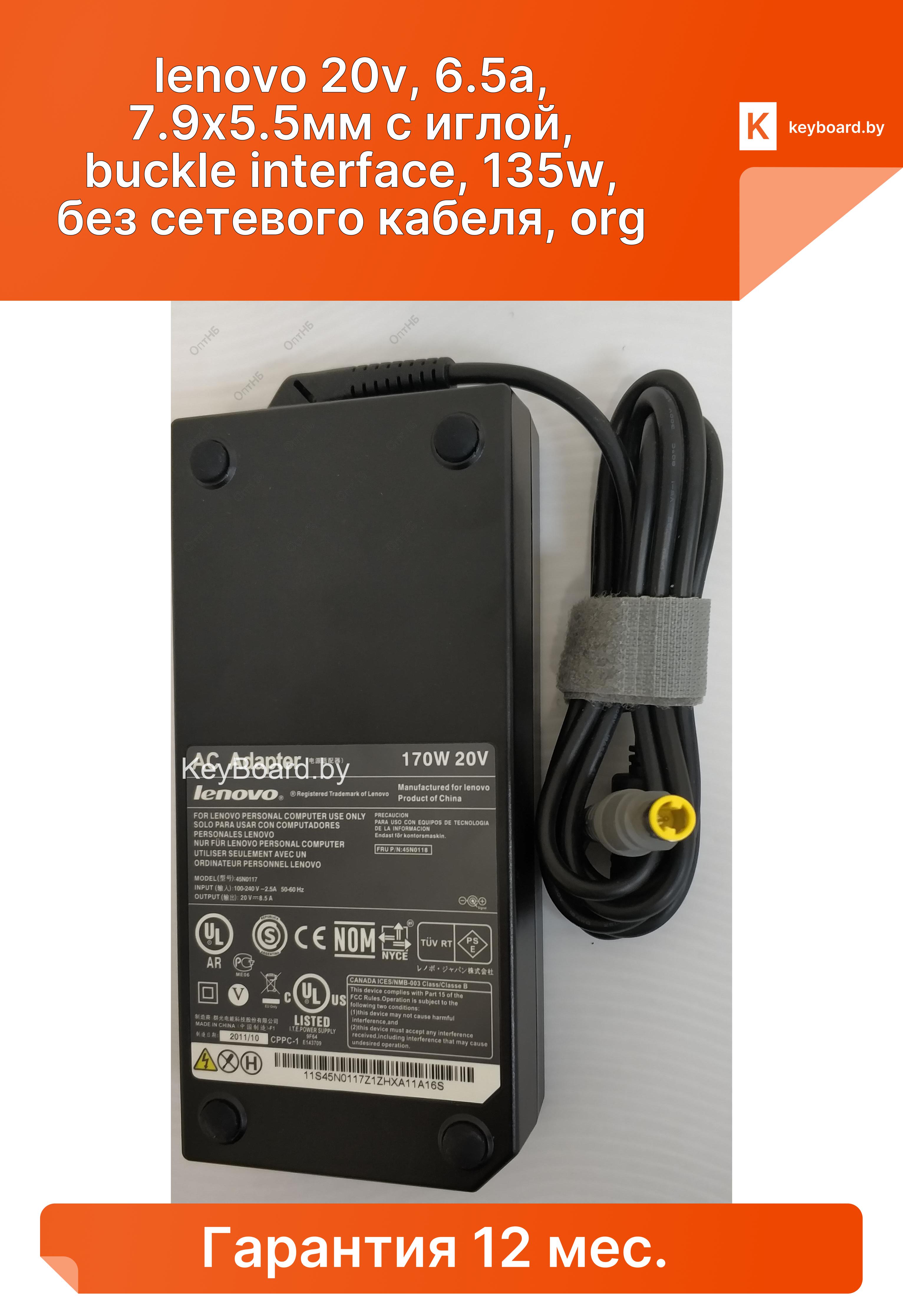 Блок питания lenovo 20v, 6.5a, 7.9x5.5мм с иглой, buckle interface, 135w, без сетевого кабеля, org