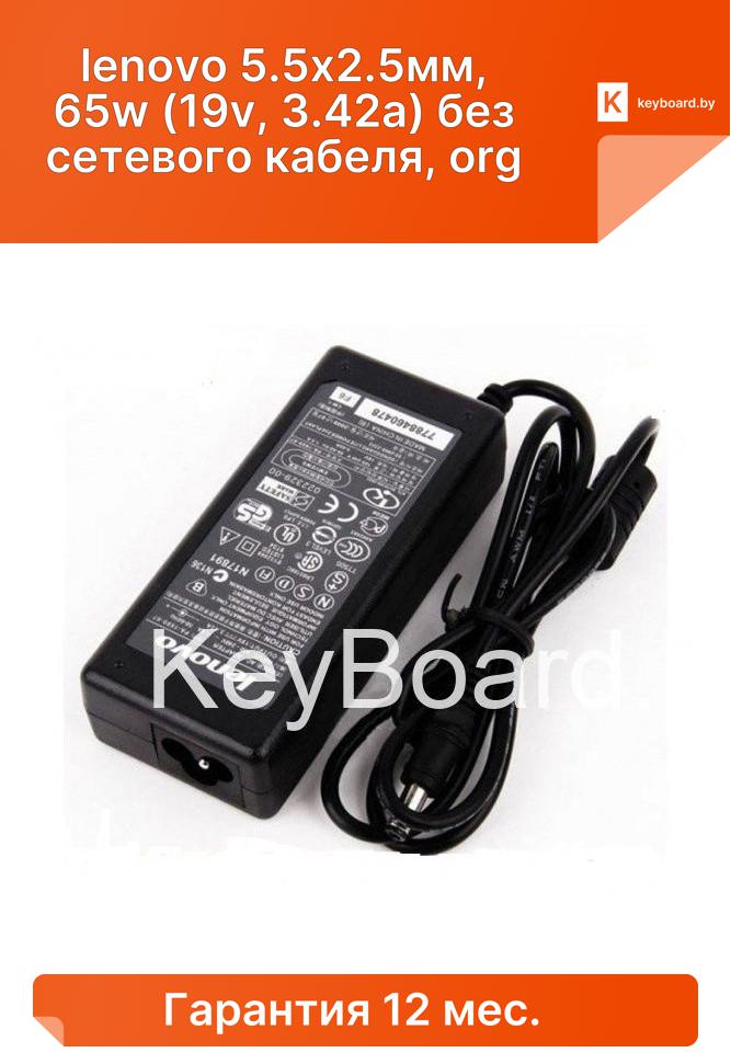 Блок питания lenovo 5.5x2.5мм, 65w (19v, 3.42a) без сетевого кабеля, org