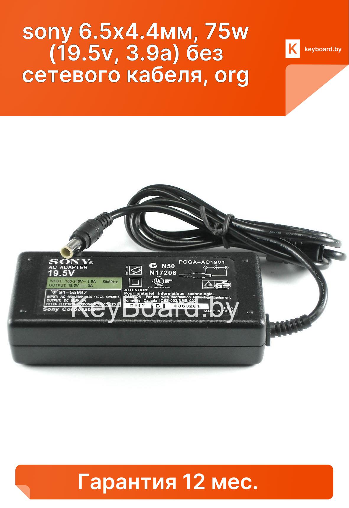 Блок питания sony 6.5x4.4мм, 75w (19.5v, 3.9a) без сетевого кабеля, org