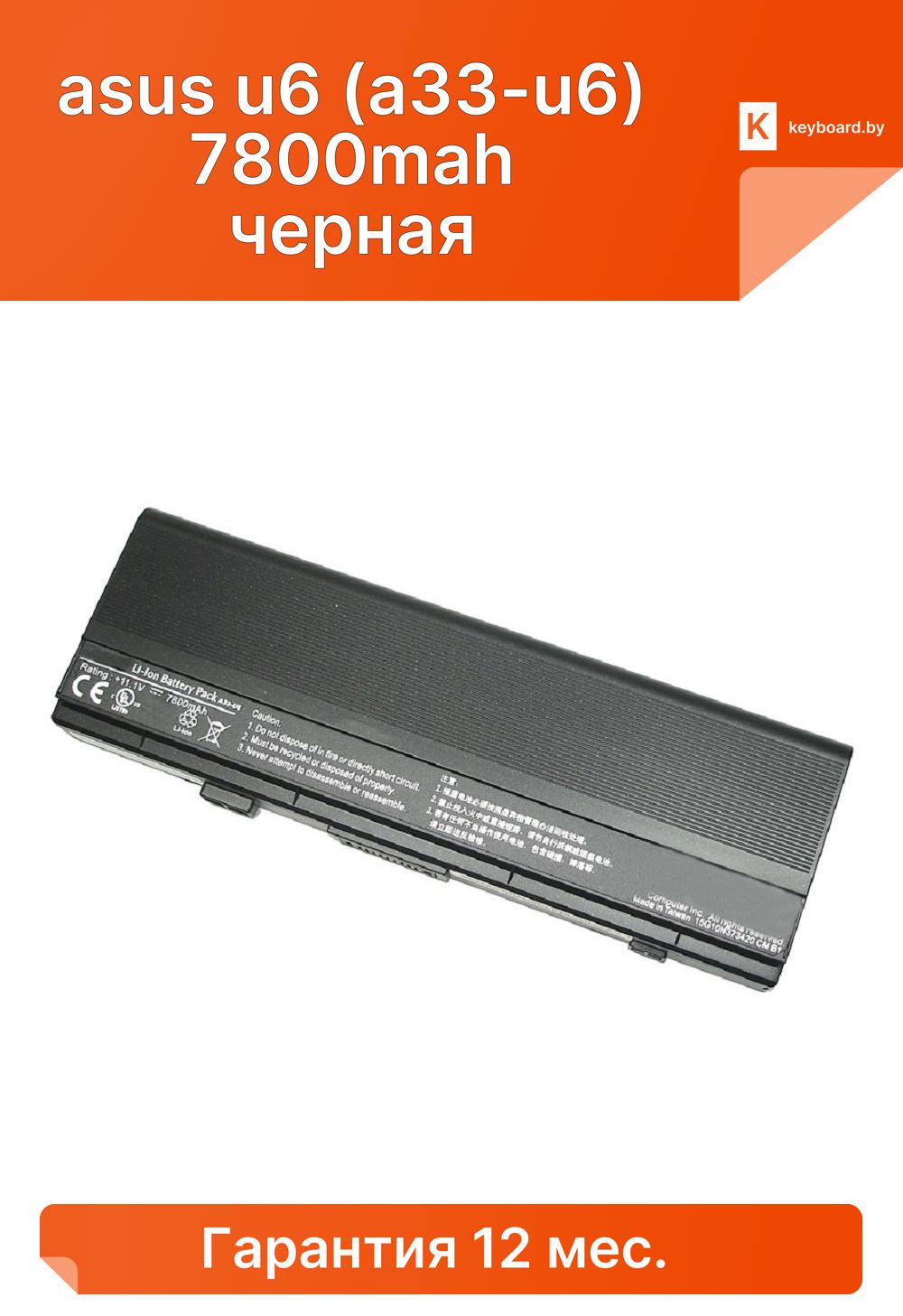 Аккумуляторная батарея для ноутбука asus u6 (a33-u6) 7800mah черная