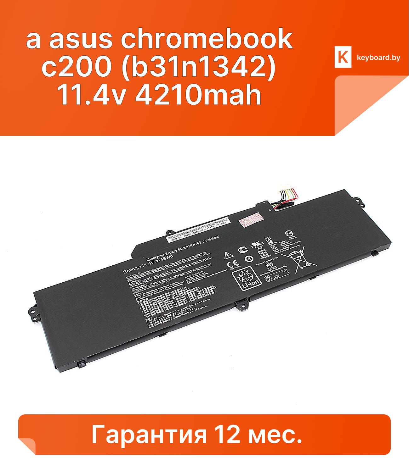 Аккумуляторная батарея для ноутбукa asus chromebook c200 (b31n1342) 11.4v 4210mah