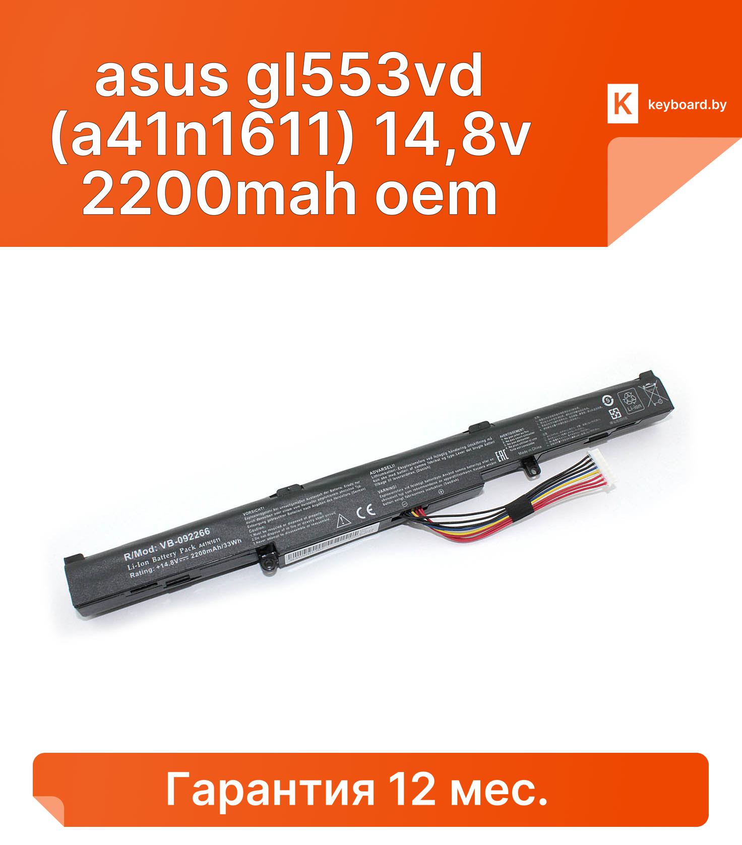 Аккумуляторная батарея для ноутбука asus gl553vd (a41n1611) 14,8v 2200mah oem