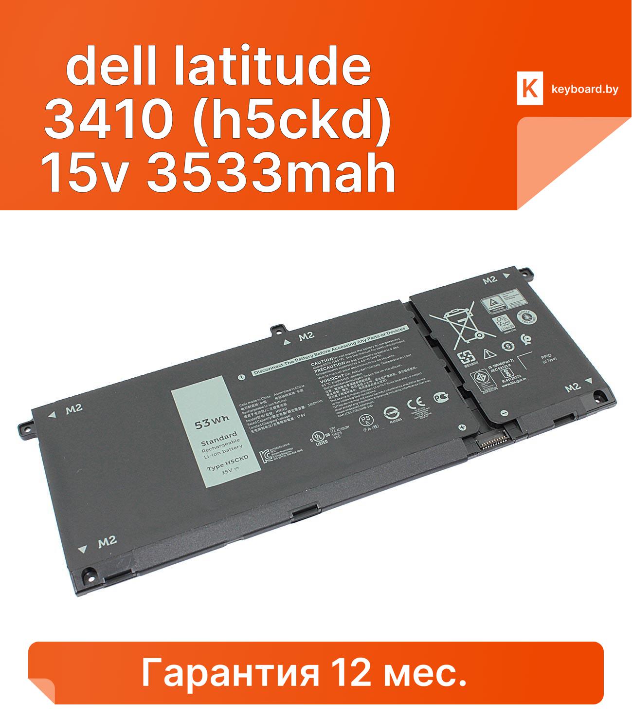 Аккумуляторная батарея для ноутбука dell latitude 3410 (h5ckd) 15v 3533mah