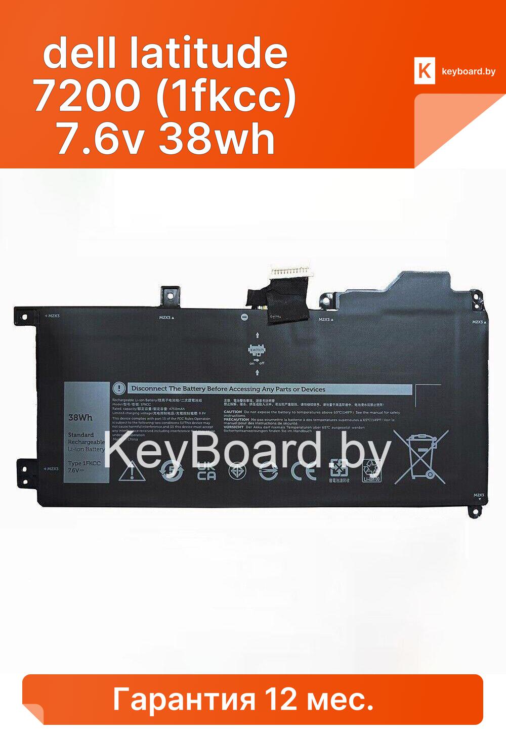 Аккумуляторная батарея для ноутбука dell latitude 7200 (1fkcc) 7.6v 38wh