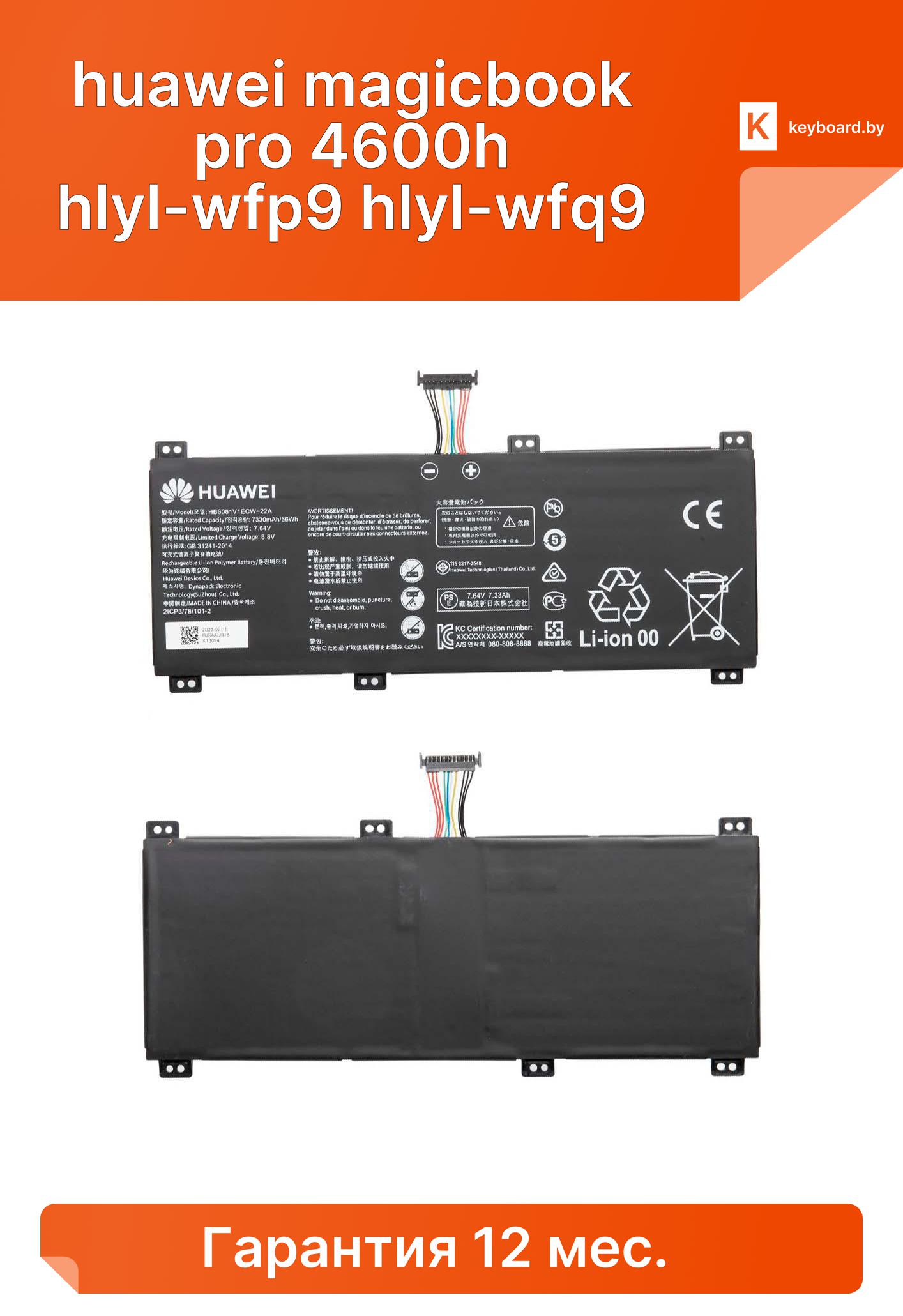 Аккумуляторная батарея для ноутбука huawei magicbook pro 4600h hlyl-wfp9 hlyl-wfq9