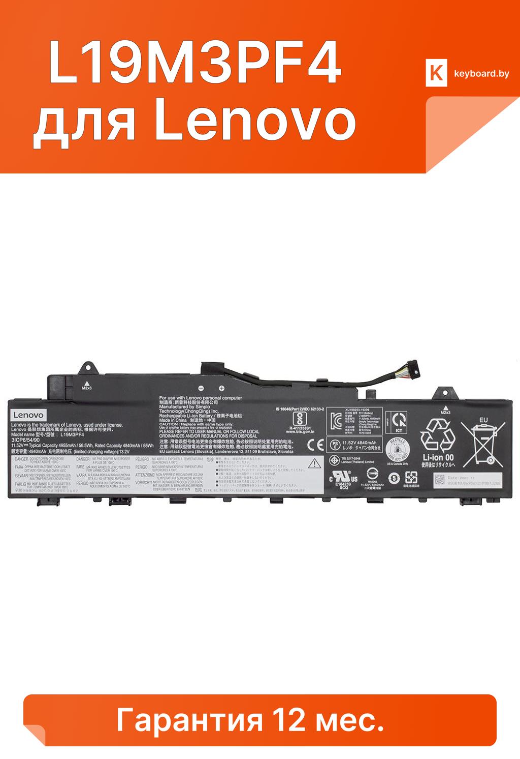 Аккумуляторная батарея (АКБ) для L19M3PF4 для Lenovo
