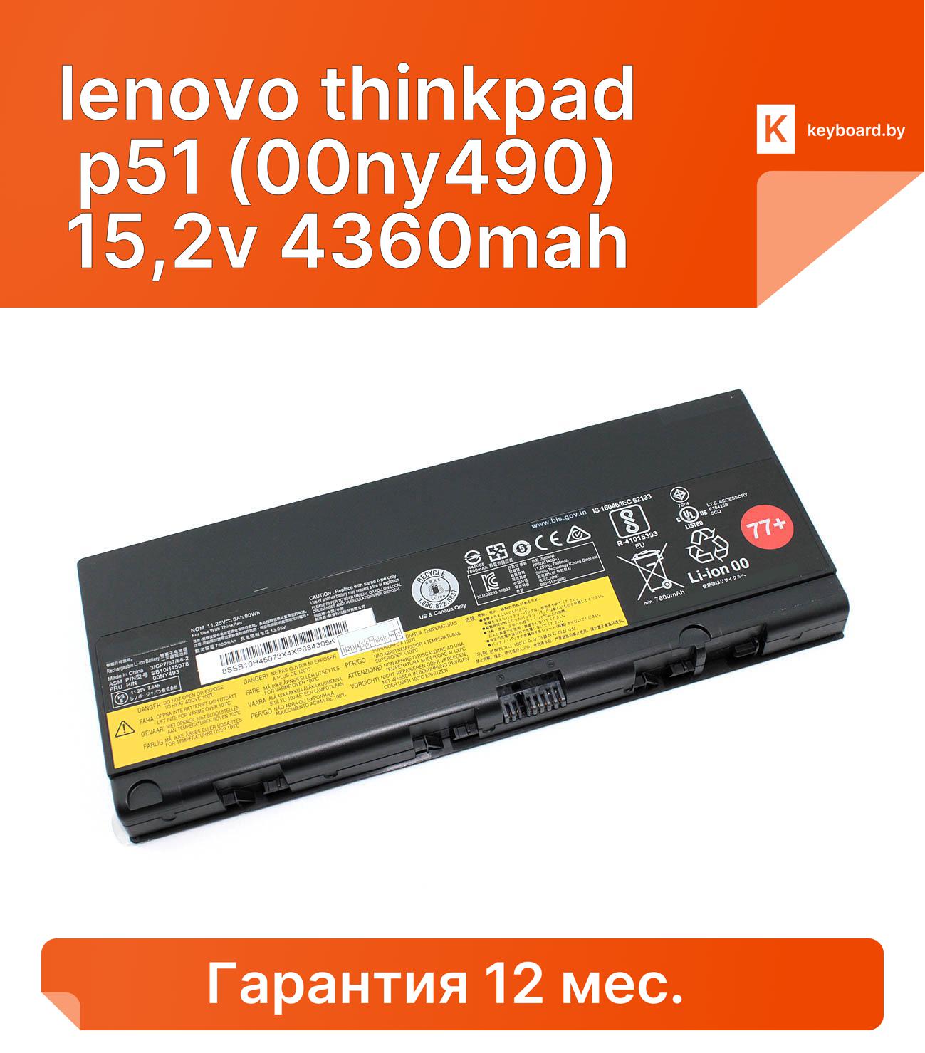 Аккумуляторная батарея для ноутбука lenovo thinkpad p51 (00ny490) 15,2v 4360mah