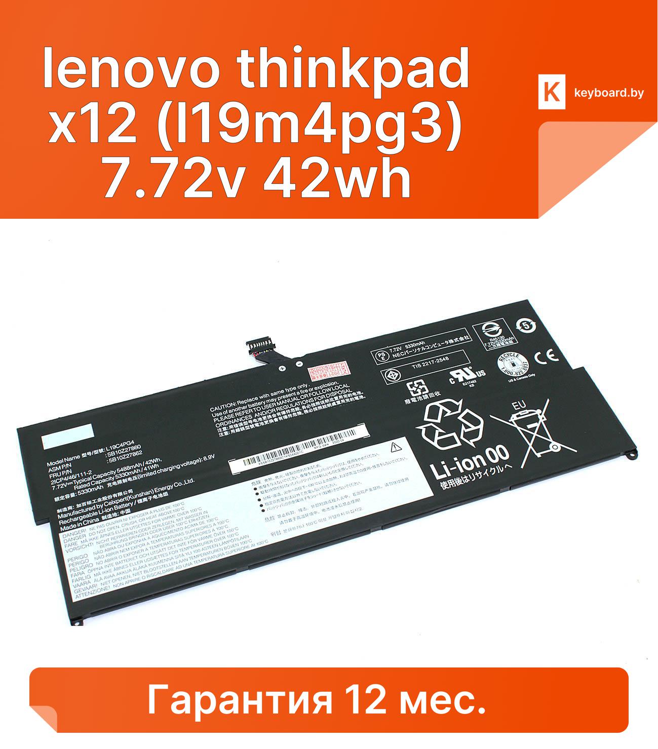 Аккумуляторная батарея для ноутбука lenovo thinkpad x12 (l19m4pg3) 7.72v 42wh