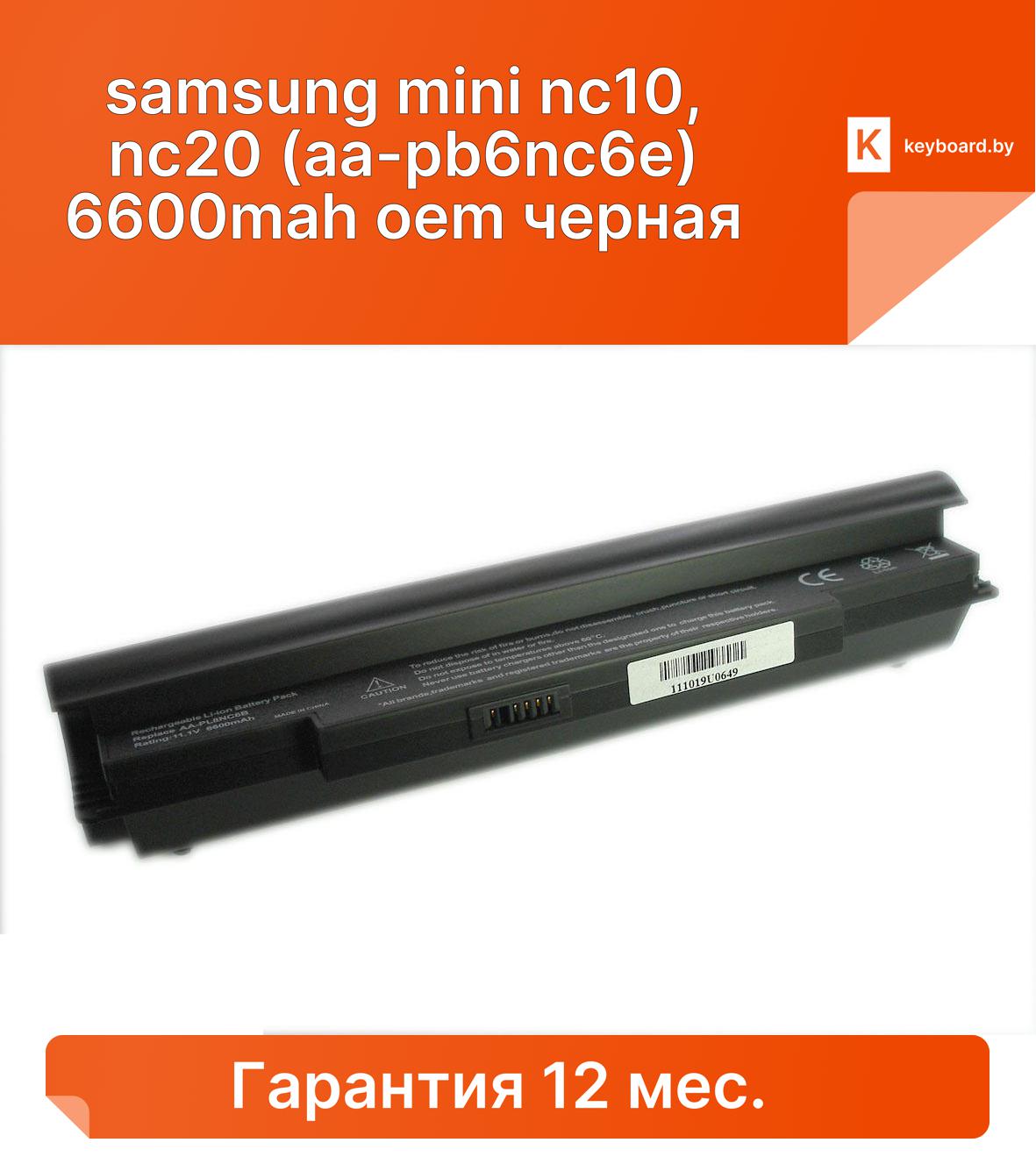 Аккумуляторная батарея для ноутбука samsung mini nc10, nc20 (aa-pb6nc6e) 6600mah oem черная