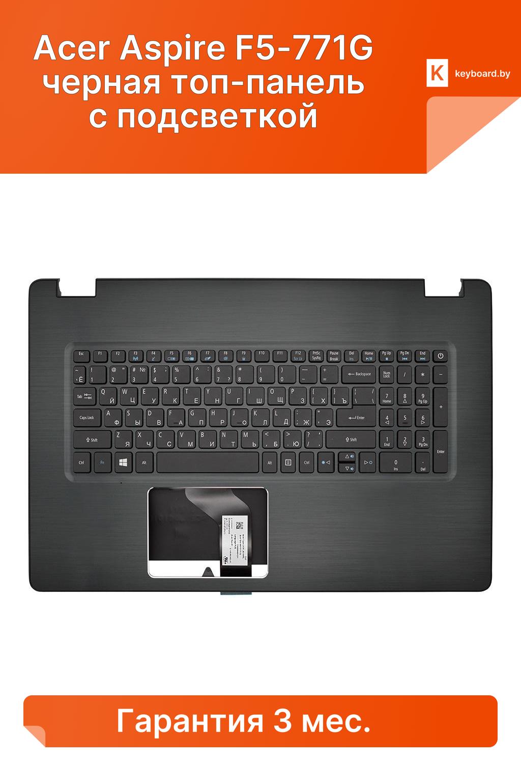 Клавиатура для ноутбука acer aspire f5-771g черная топ-панель с подсветкой