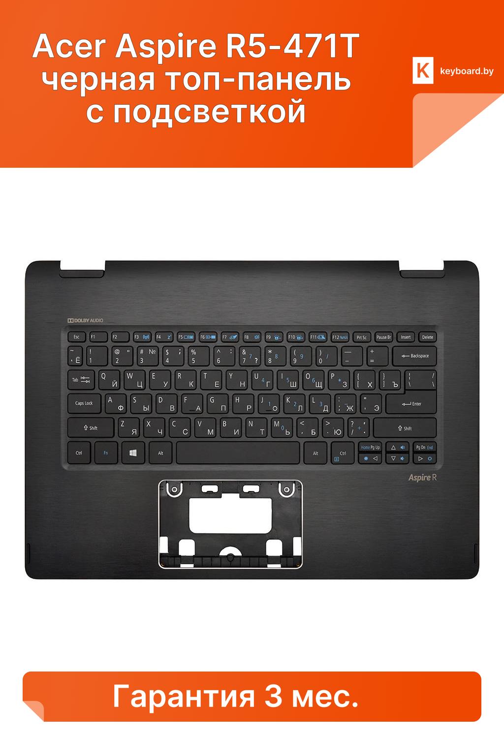 Клавиатура для ноутбука acer aspire r5-471t черная топ-панель с подсветкой