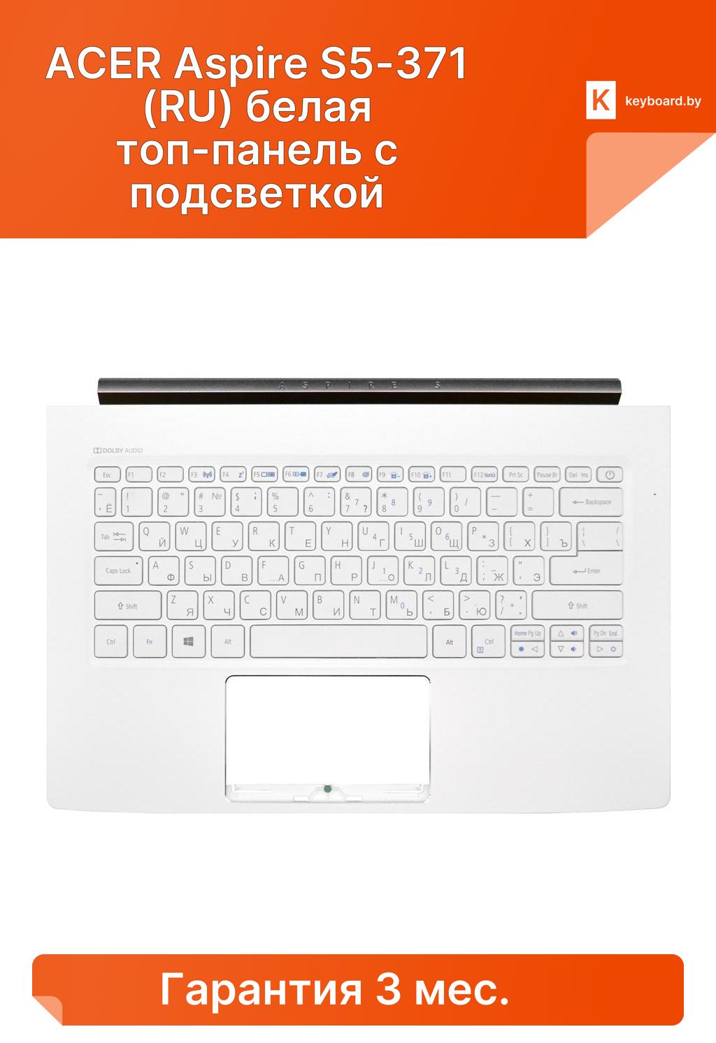 Клавиатура для ноутбука acer aspire s5-371 (ru) белая топ-панель с подсветкой
