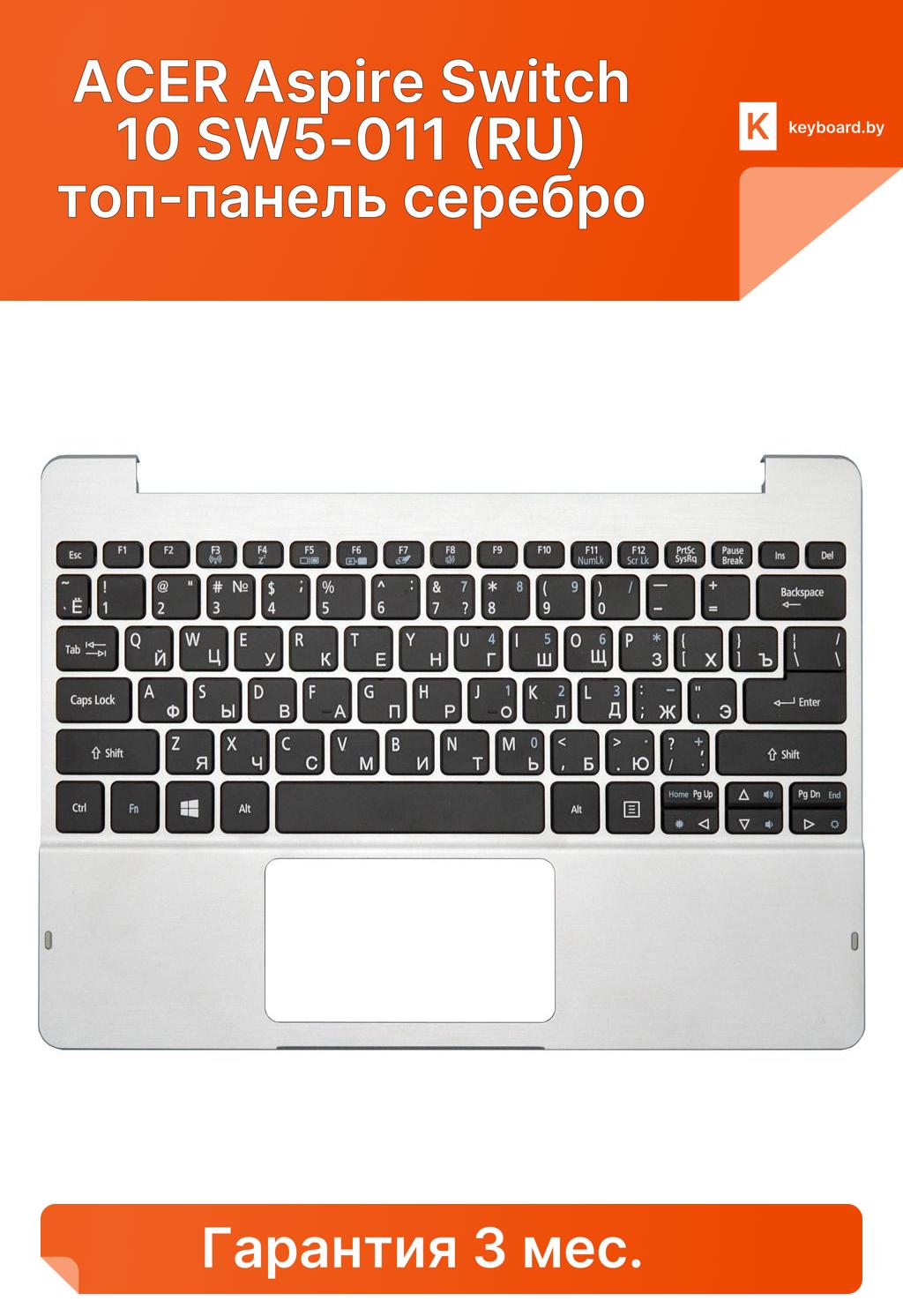 Клавиатура для ноутбука acer aspire switch 10 sw5-011 (ru) топ-панель серебро
