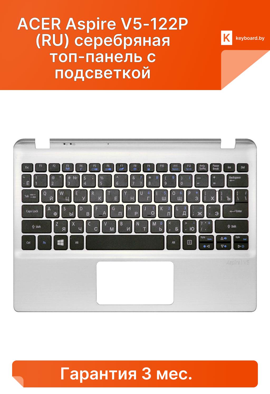 Клавиатура для ноутбука acer aspire v5-122p (ru) серебряная топ-панель с подсветкой