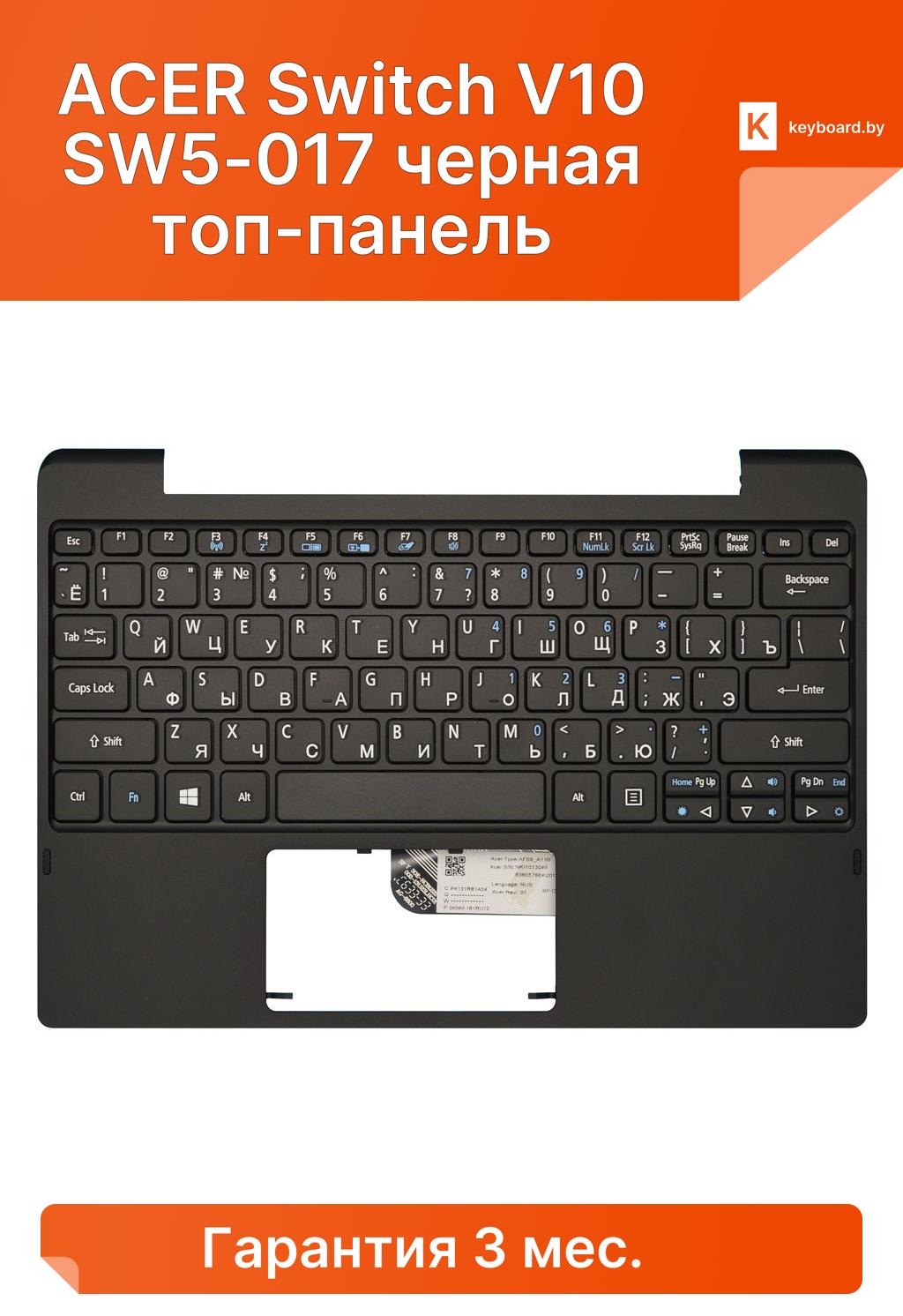 Клавиатура для ноутбука acer switch v10 sw5-017 черная топ-панель