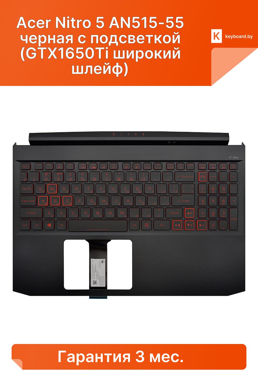 Топ-панель acer nitro 5 an515-55 черная с подсветкой (gtx1650ti широкий шлейф)