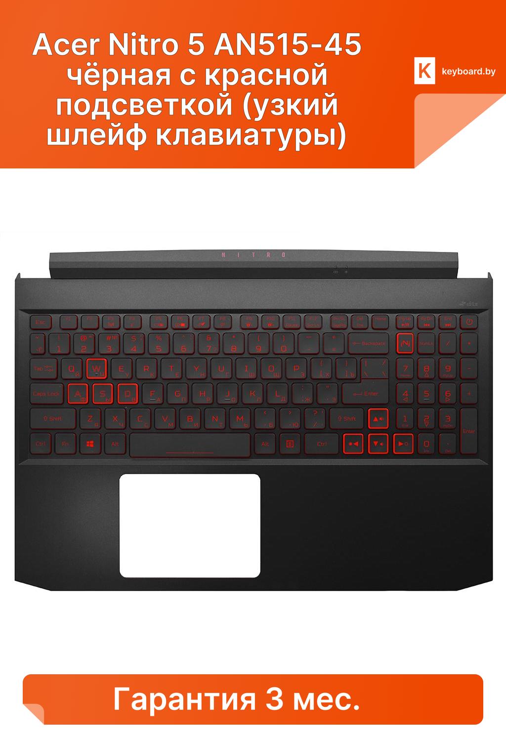 Топ-панель для Acer Nitro 5 AN515-45 чёрная с красной подсветкой (узкий шлейф клавиатуры)