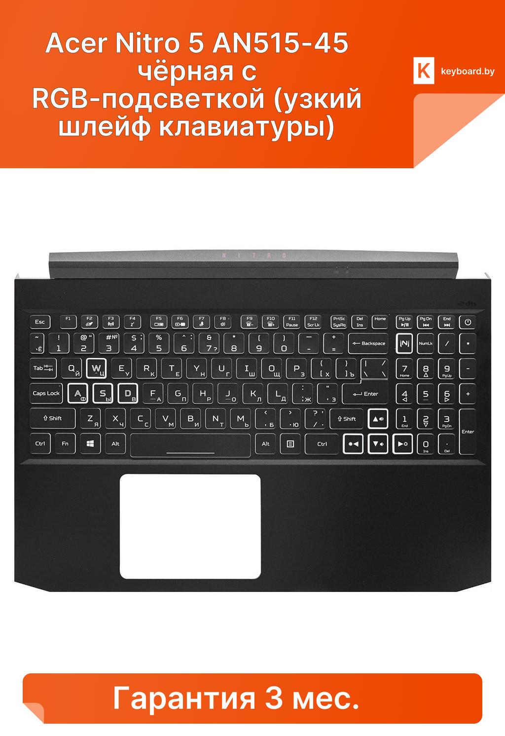 Топ-панель для acer nitro 5 an515-45 чёрная с rgb-подсветкой (узкий шлейф клавиатуры)