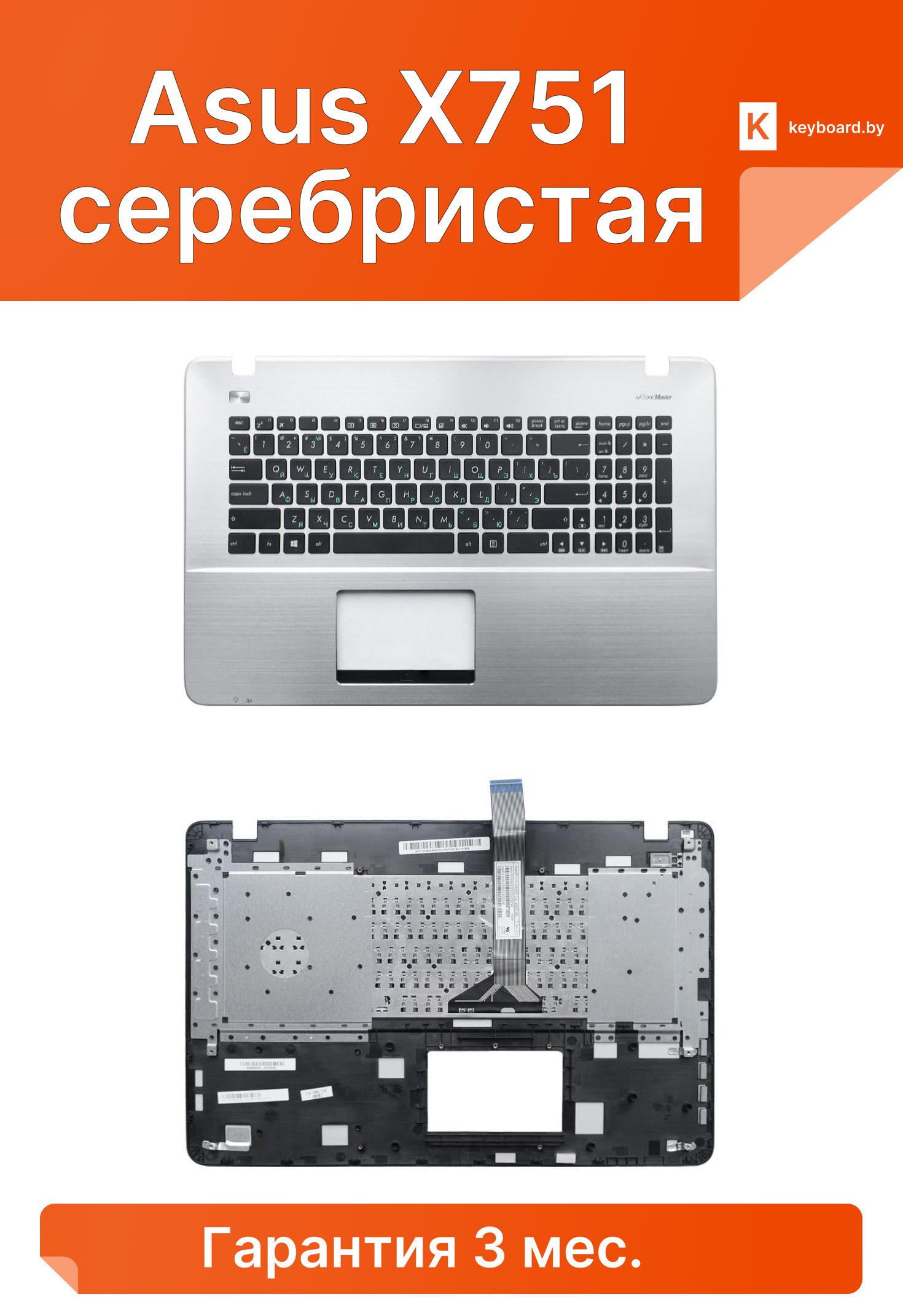 Топ-панель с клавиатурой для asus x751 серебристая