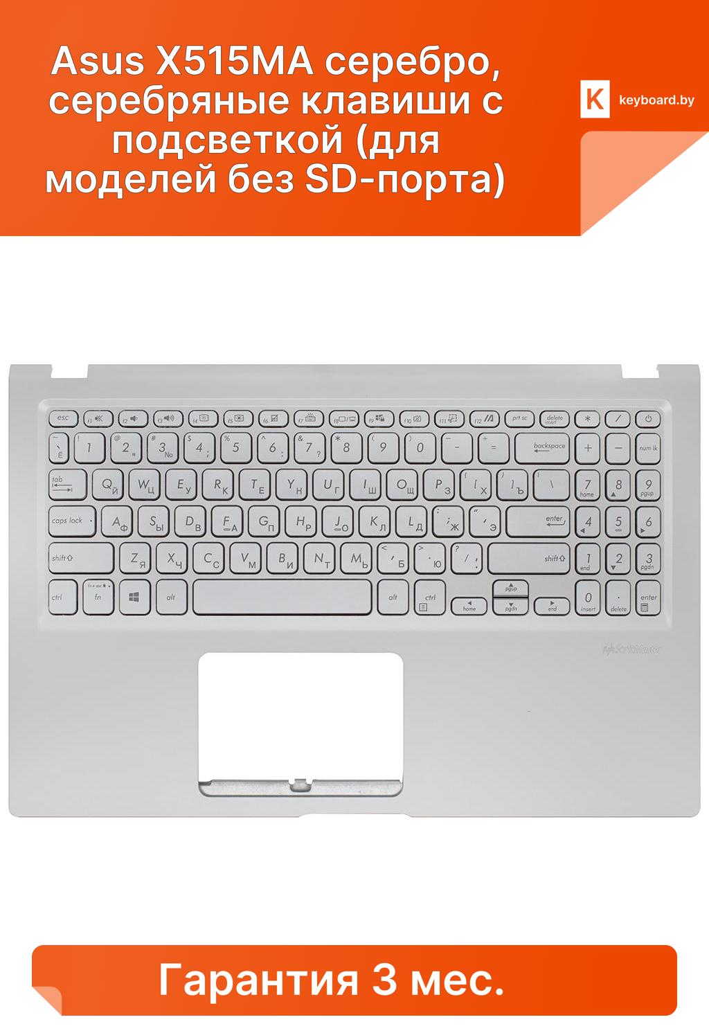 Топ-панель для ноутбука asus x515ma серебро, серебряные клавиши с подсветкой (для моделей без sd-порта)