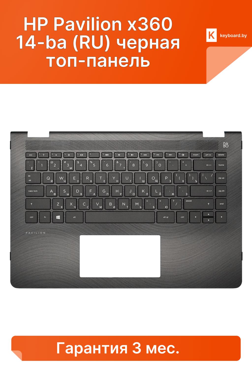 Клавиатура для ноутбука hp pavilion x360 14-ba (ru) черная топ-панель