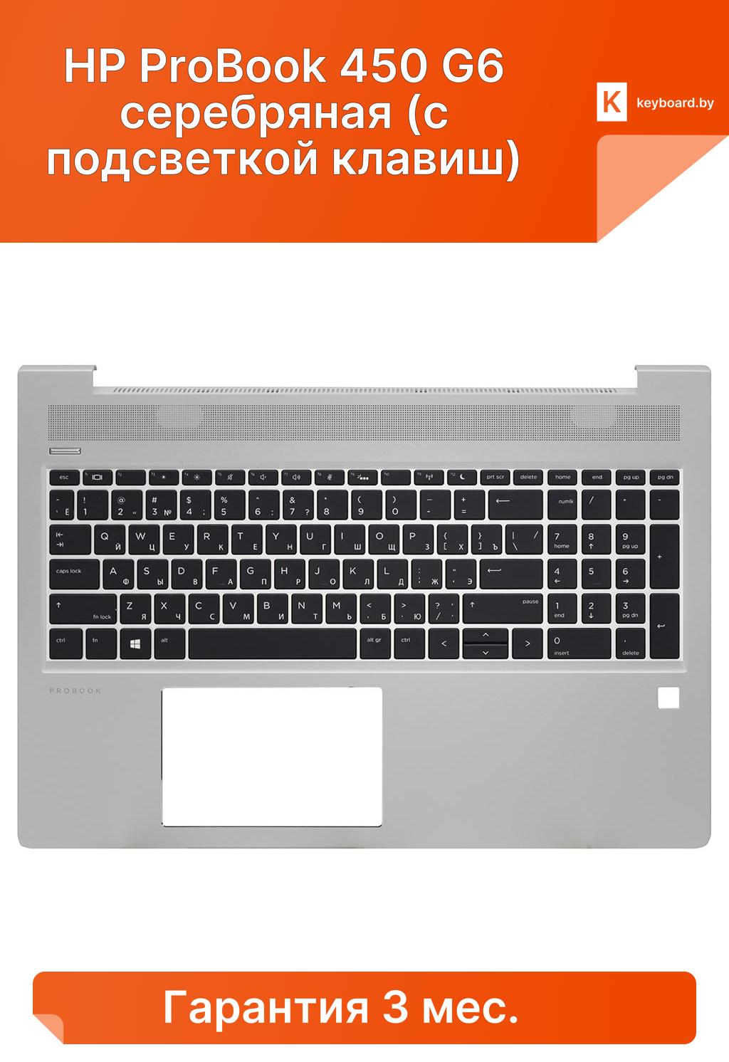 Топ-панель hp probook 450 g6 серебряная (с подсветкой клавиш)