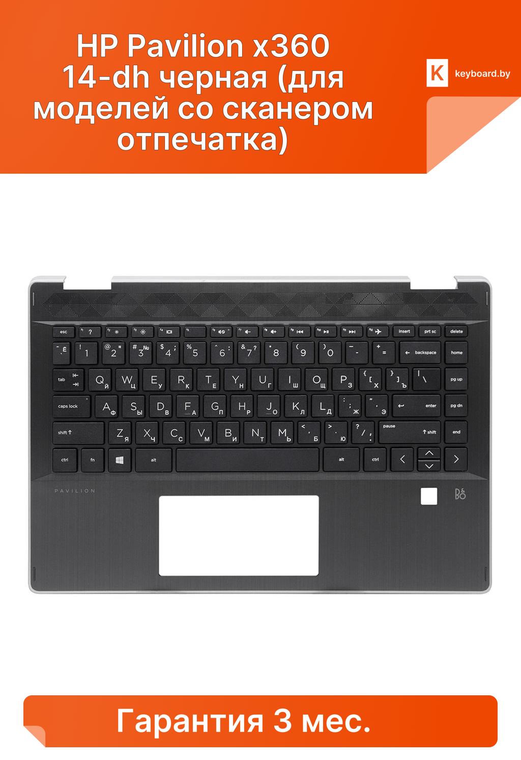 Топ-панель hp pavilion x360 14-dh черная (для моделей со сканером отпечатка)