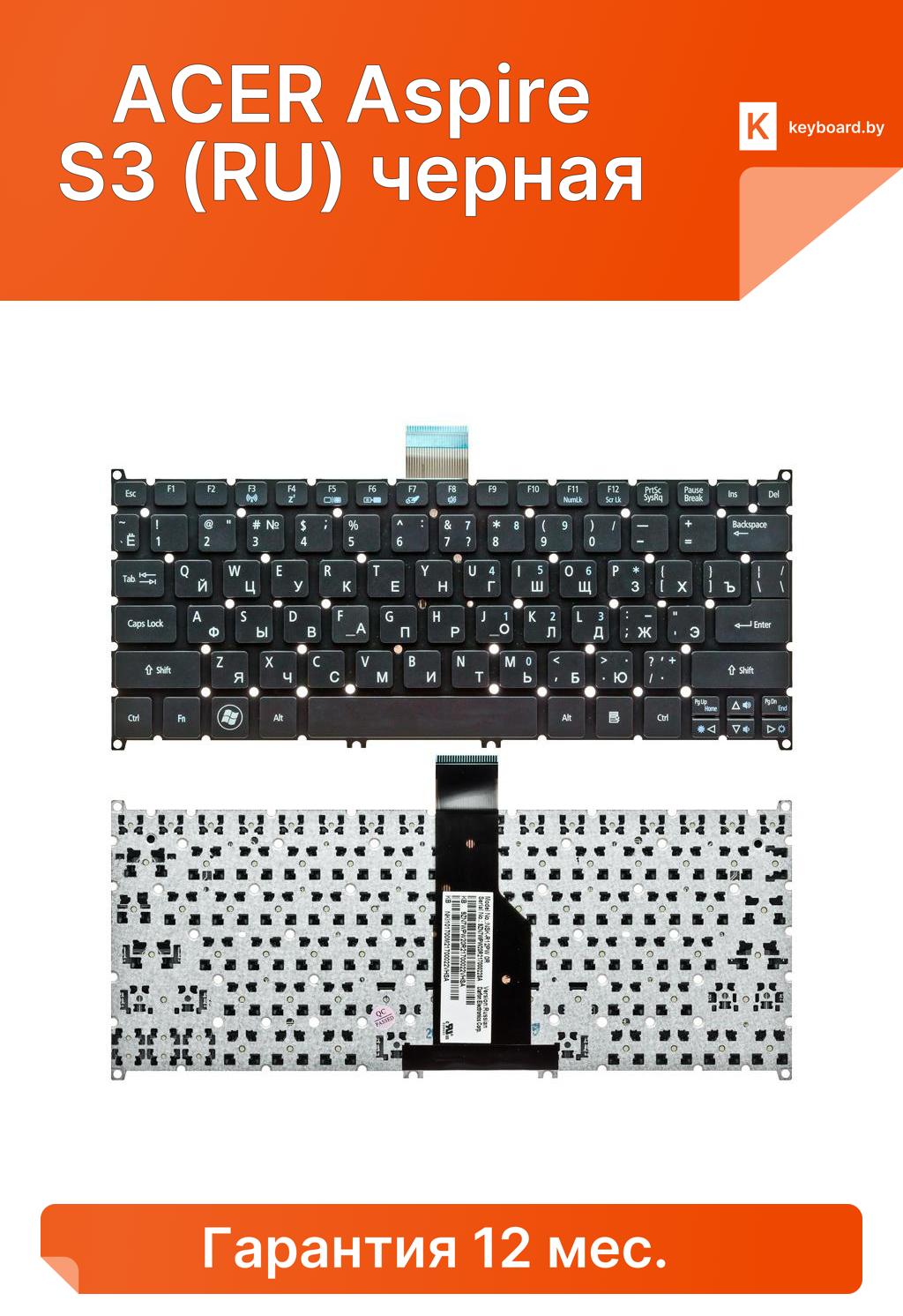Клавиатура для ноутбука acer aspire s3 (ru) черная