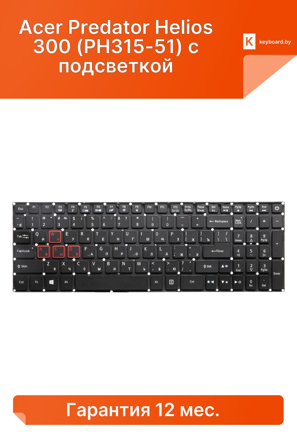 Клавиатура для Acer Predator Helios 300 (PH315-51) с подсветкой