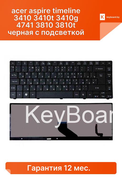 Клавиатура для ноутбука acer aspire timeline 3410 3410t 3410g 4741 3810 3810t черная с подсветкой