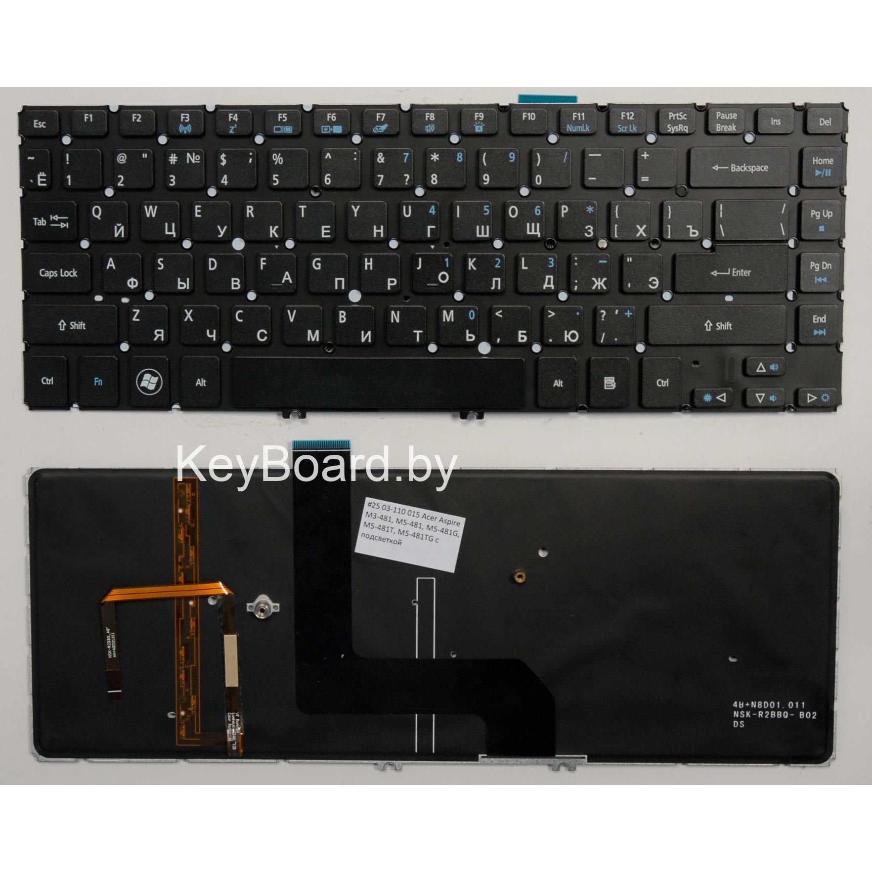 Клавиатура для ноутбука acer aspire m3-481, m5-481, m5-481g, m5-481t, m5-481tg черная, с подсветкой