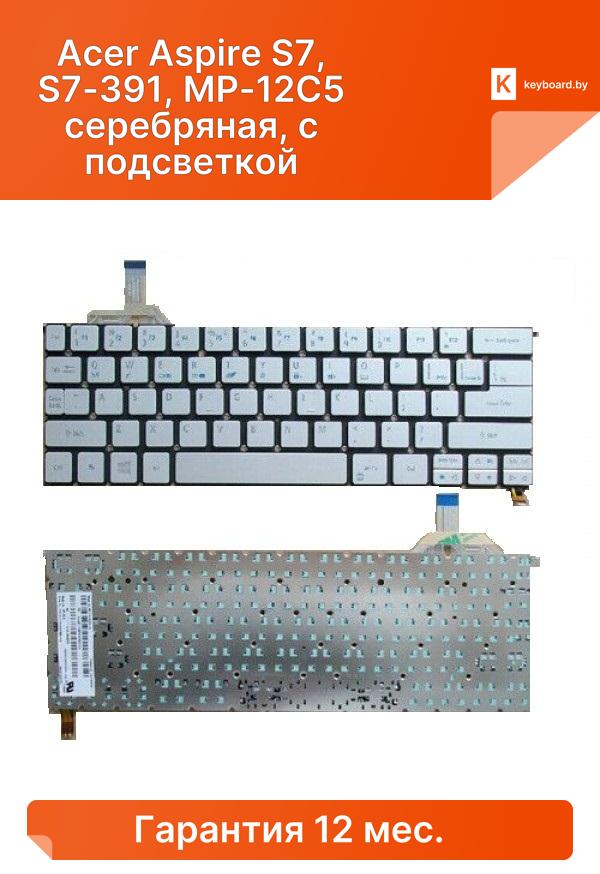 Клавиатура для ноутбука acer aspire s7, s7-391, mp-12c5 серебряная, с подсветкой