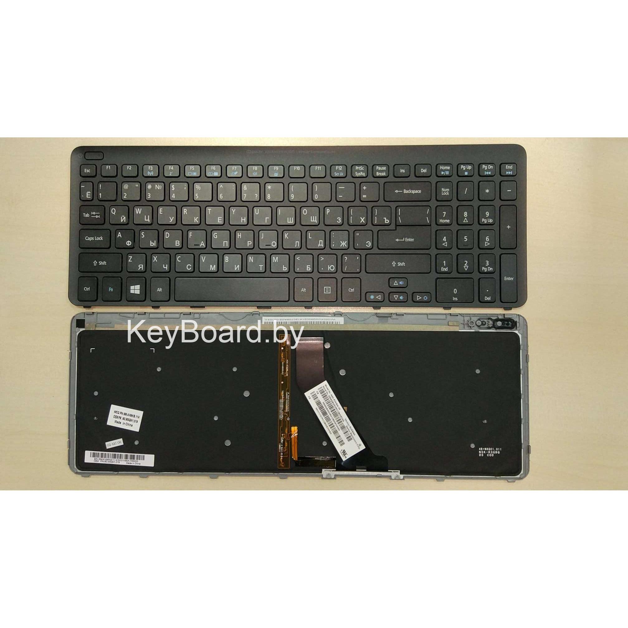 Клавиатура для ноутбука Acer Aspire V5-531, V5-551, V5-552, V5-571, V5-572, V7-581, V7-582, M3-581, M5-581 черная, рамка черная, с подсветкой
