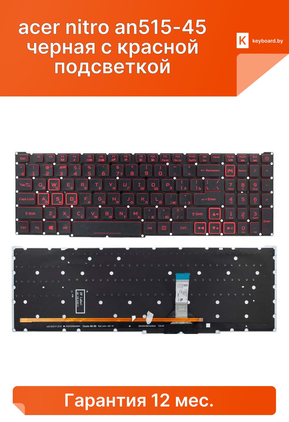 Клавиатура для ноутбука acer nitro an515-45 черная с красной подсветкой
