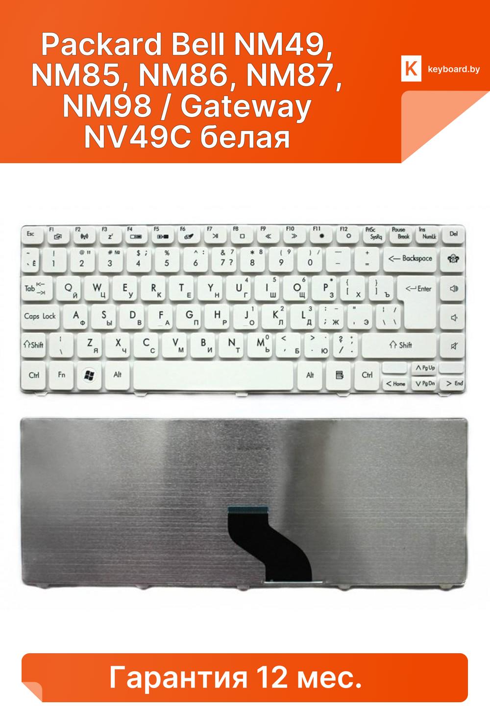 Клавиатура для ноутбука packard bell nm49, nm85, nm86, nm87, nm98 / gateway nv49c белая