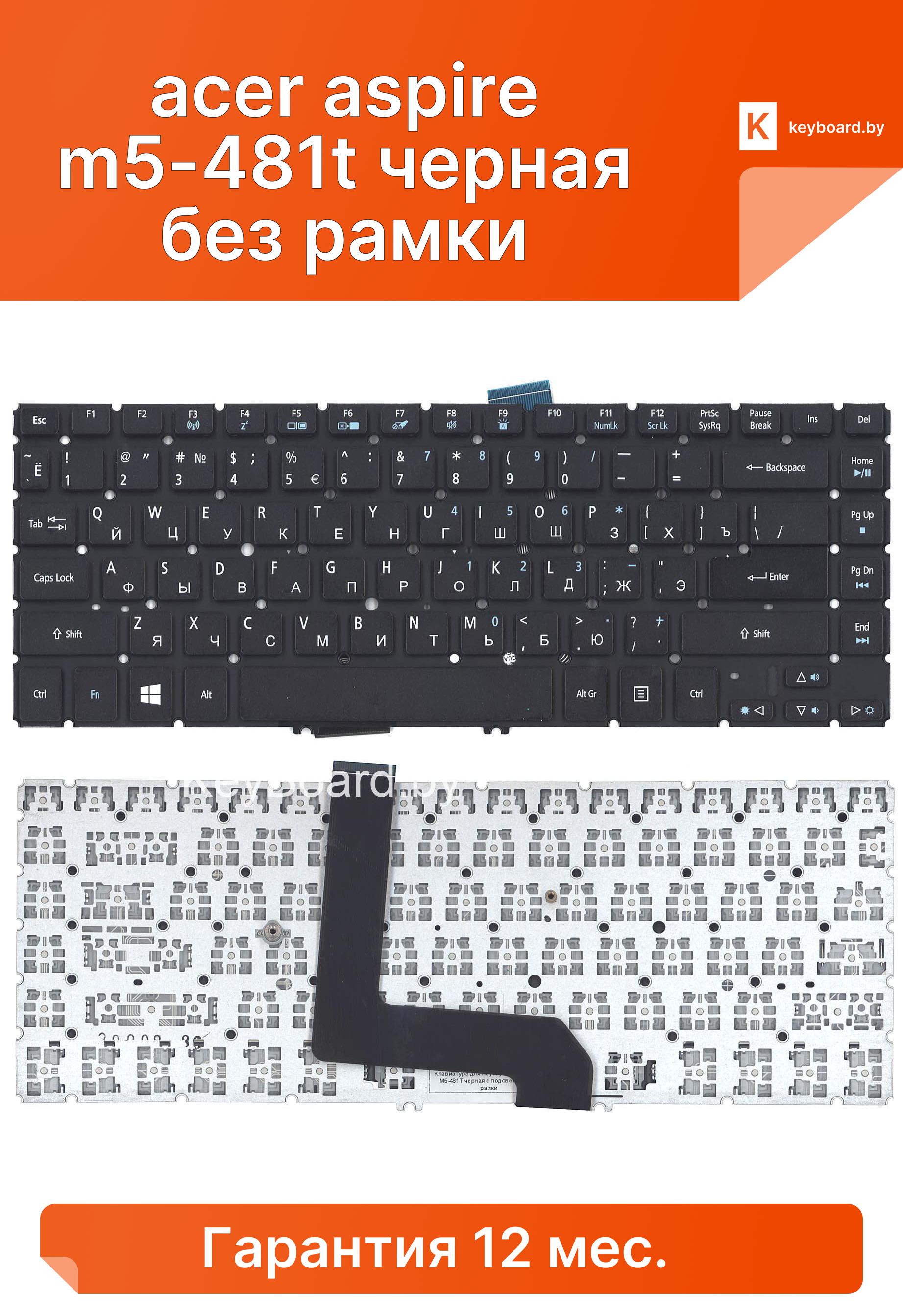 Клавиатура для ноутбука acer aspire m5-481t черная без рамки