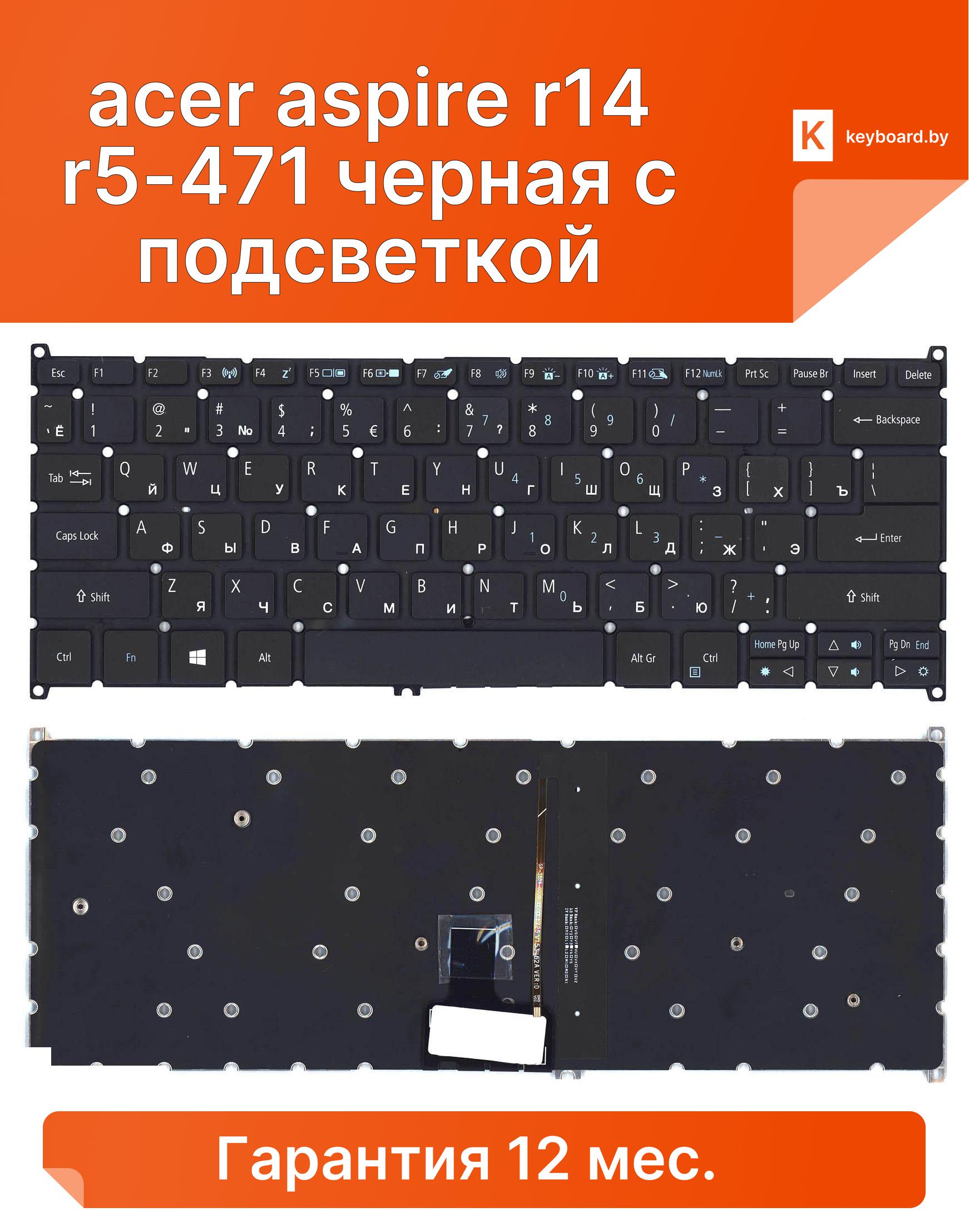 Клавиатура для ноутбука acer aspire r14 r5-471 черная с подсветкой