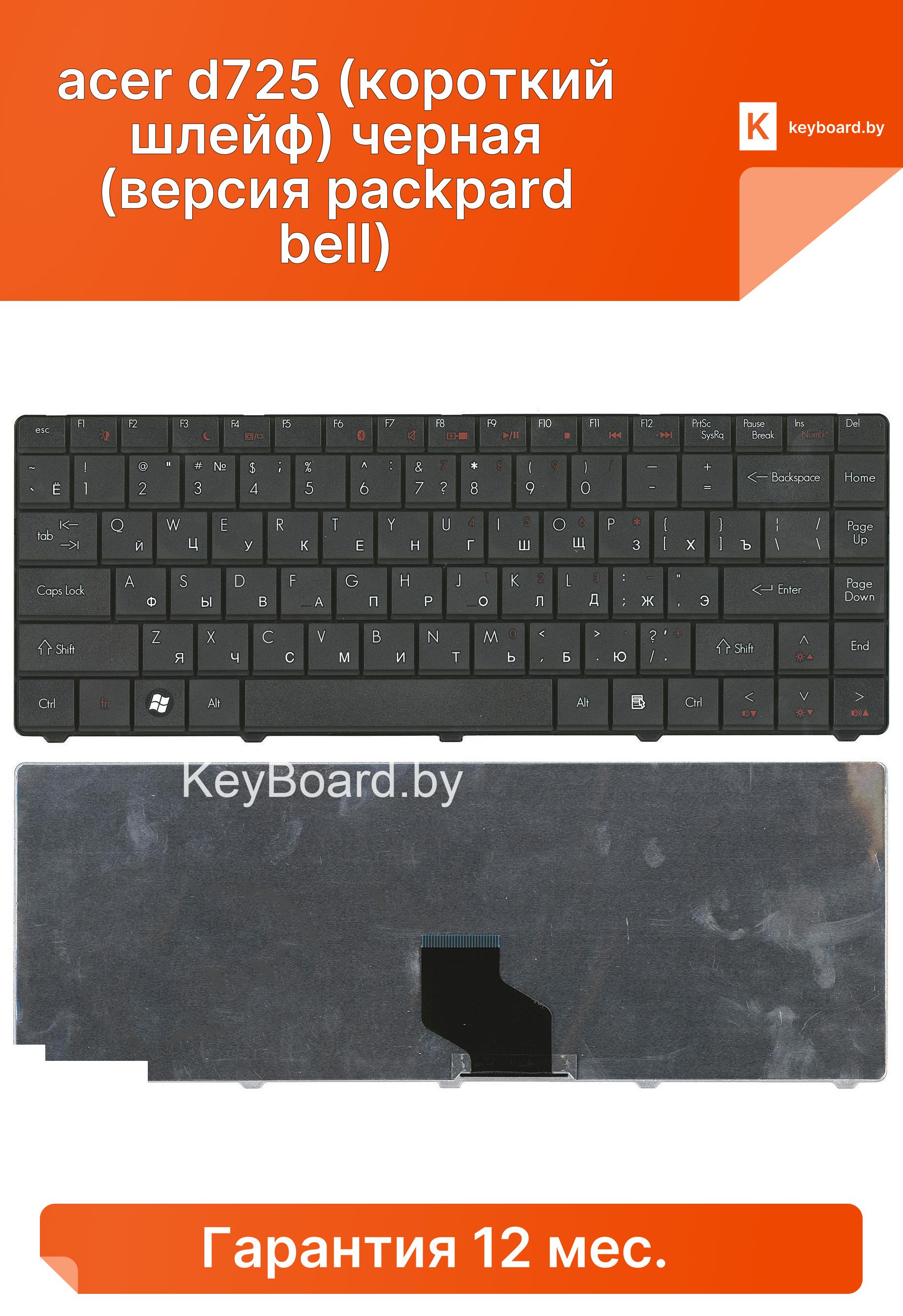 Клавиатура для ноутбука acer d725 (короткий шлейф) черная (версия packpard bell)