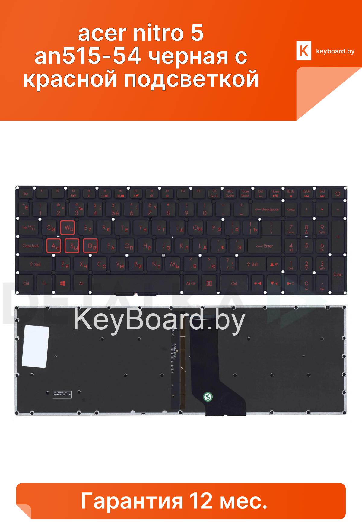 Клавиатура для ноутбука acer nitro 5 an515-54 черная с красной подсветкой