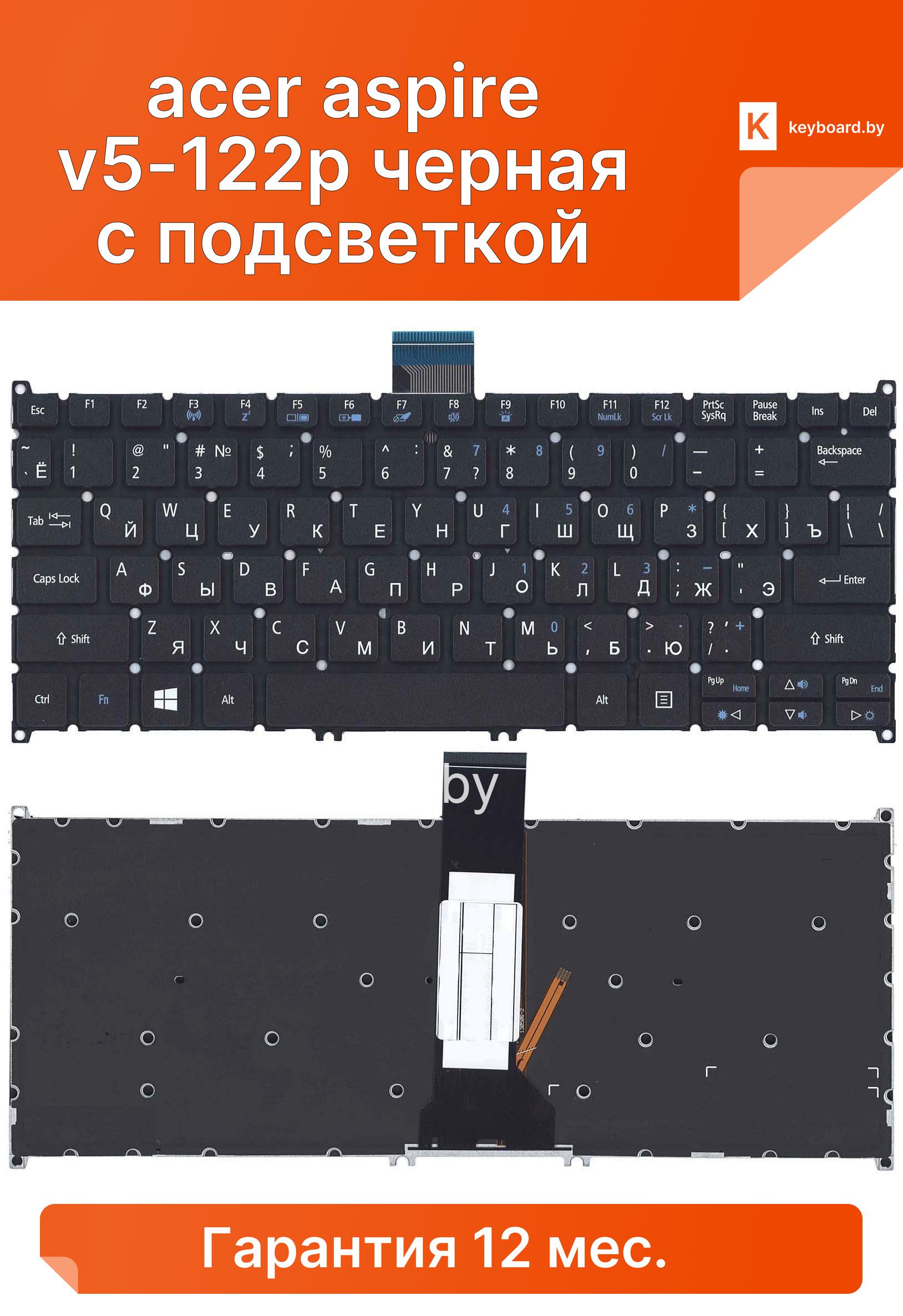 Клавиатура для ноутбука acer aspire v5-122p черная с подсветкой