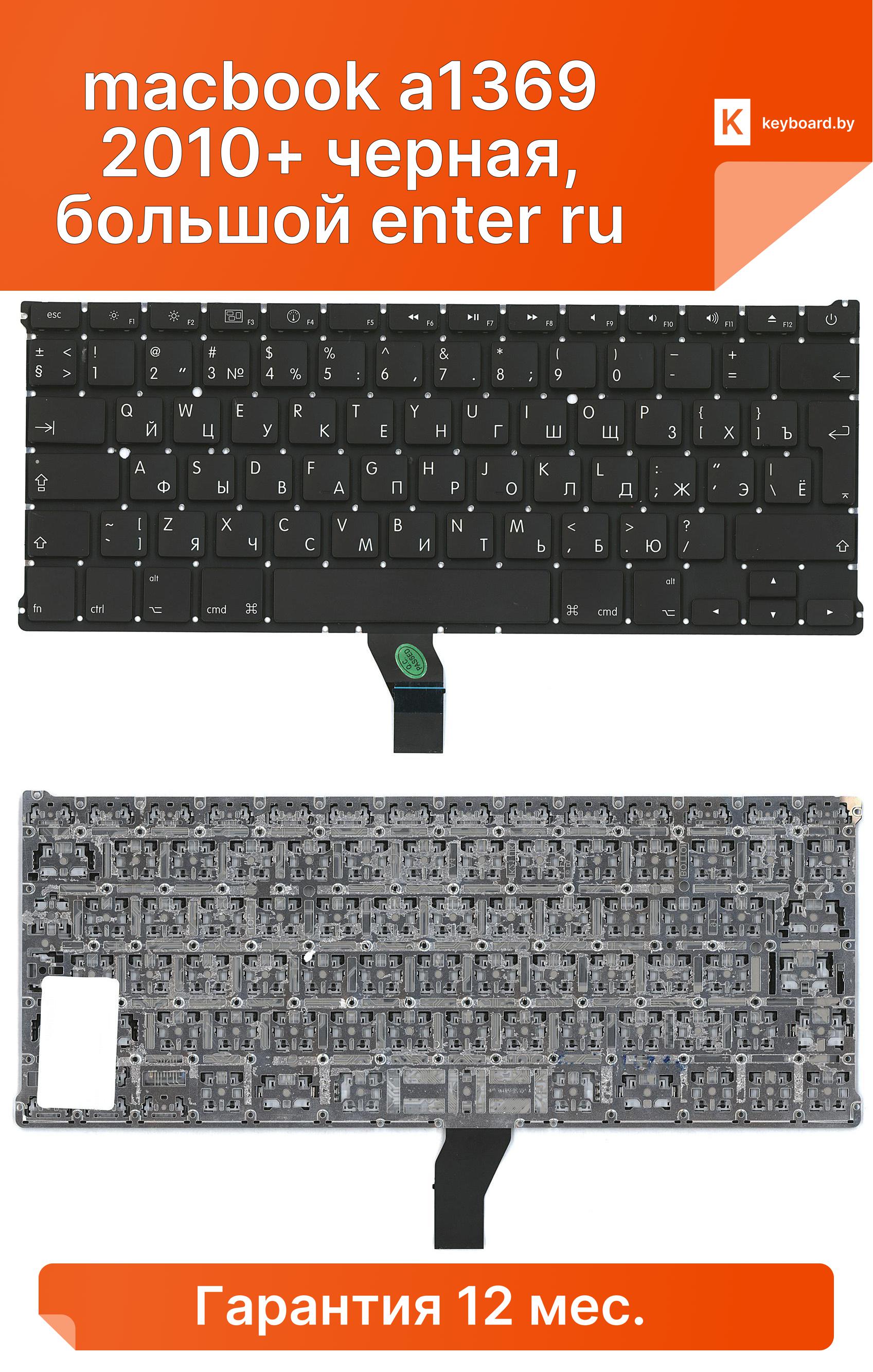 Клавиатура для ноутбука macbook a1369 2010+ черная, большой enter ru