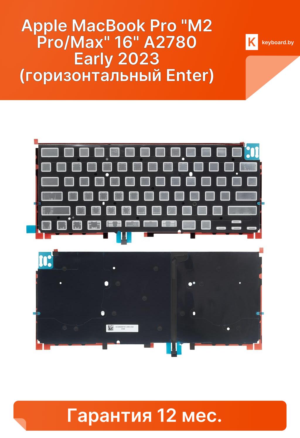 Подсветка для клавиатуры apple macbook pro "m2 pro/max" 16" a2780 early 2023 (горизонтальный enter)