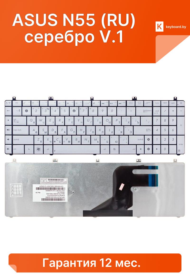 Клавиатура для ноутбука asus n55 (ru) серебро v.1