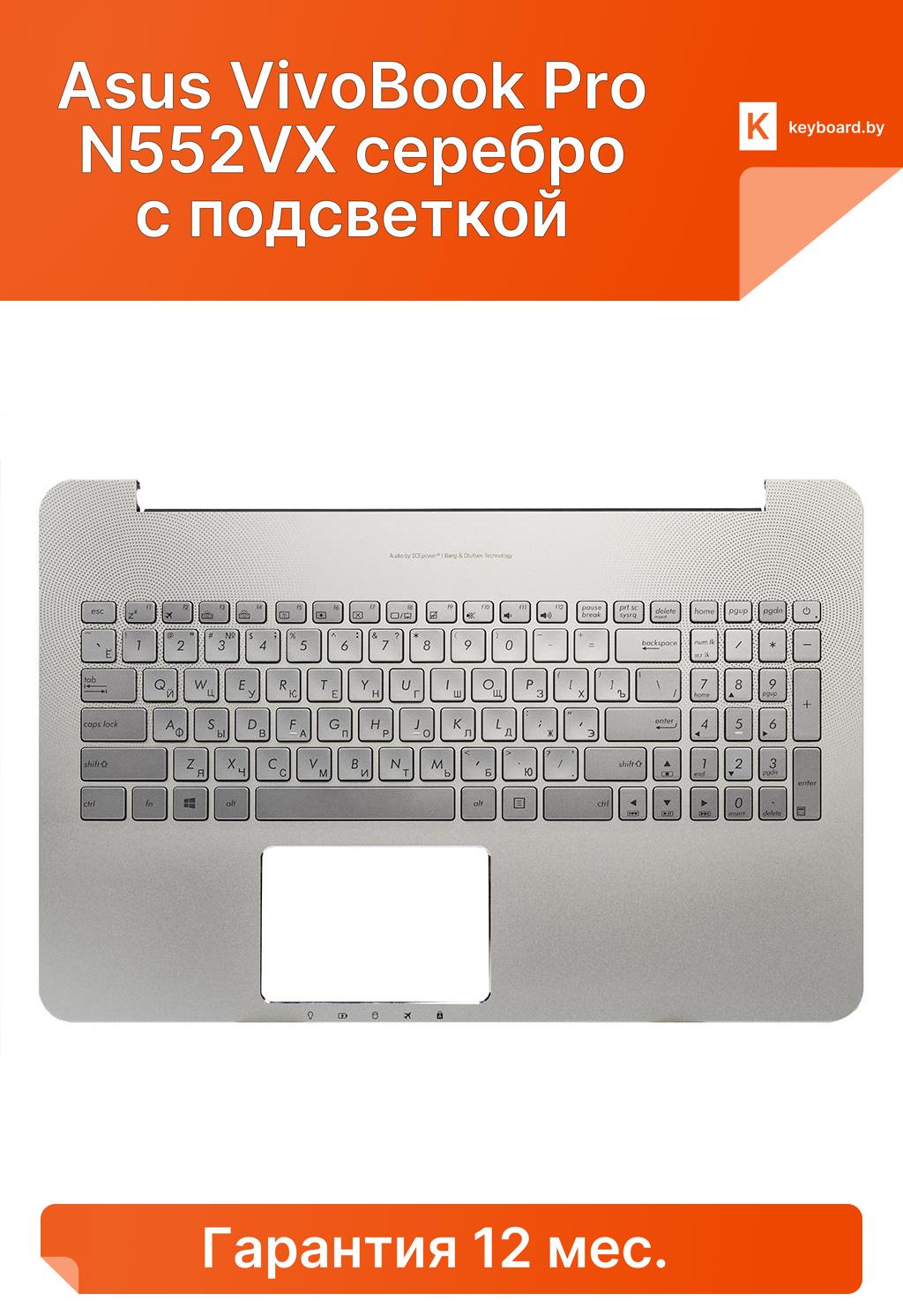 Топ-панель asus vivobook pro n552vx серебро с подсветкой