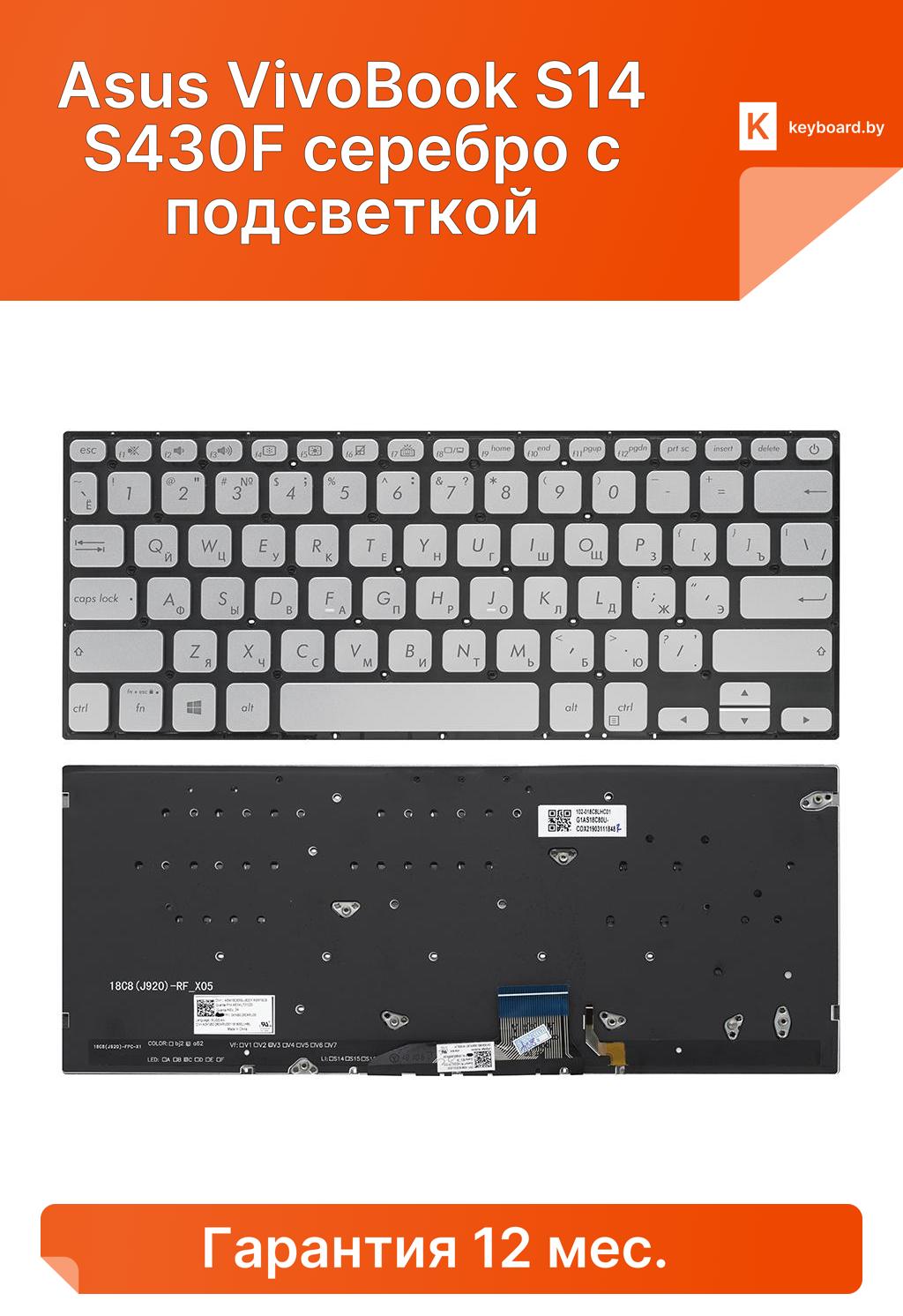 Клавиатура для ноутбука asus vivobook s14 s430f серебро с подсветкой