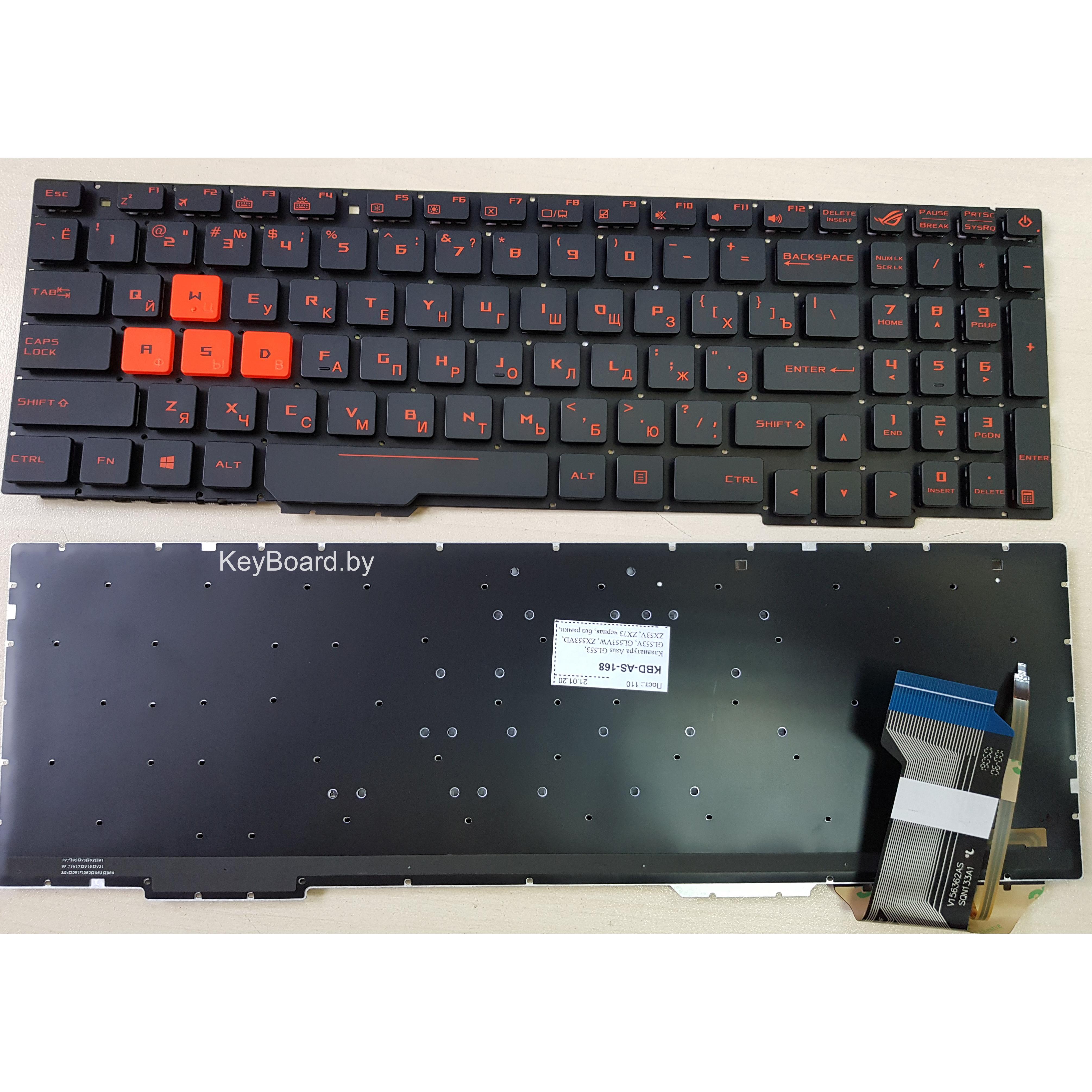 Клавиатура для ноутбука asus gl553vw черная, без рамки, оранжевые кнопки, с подсветкой