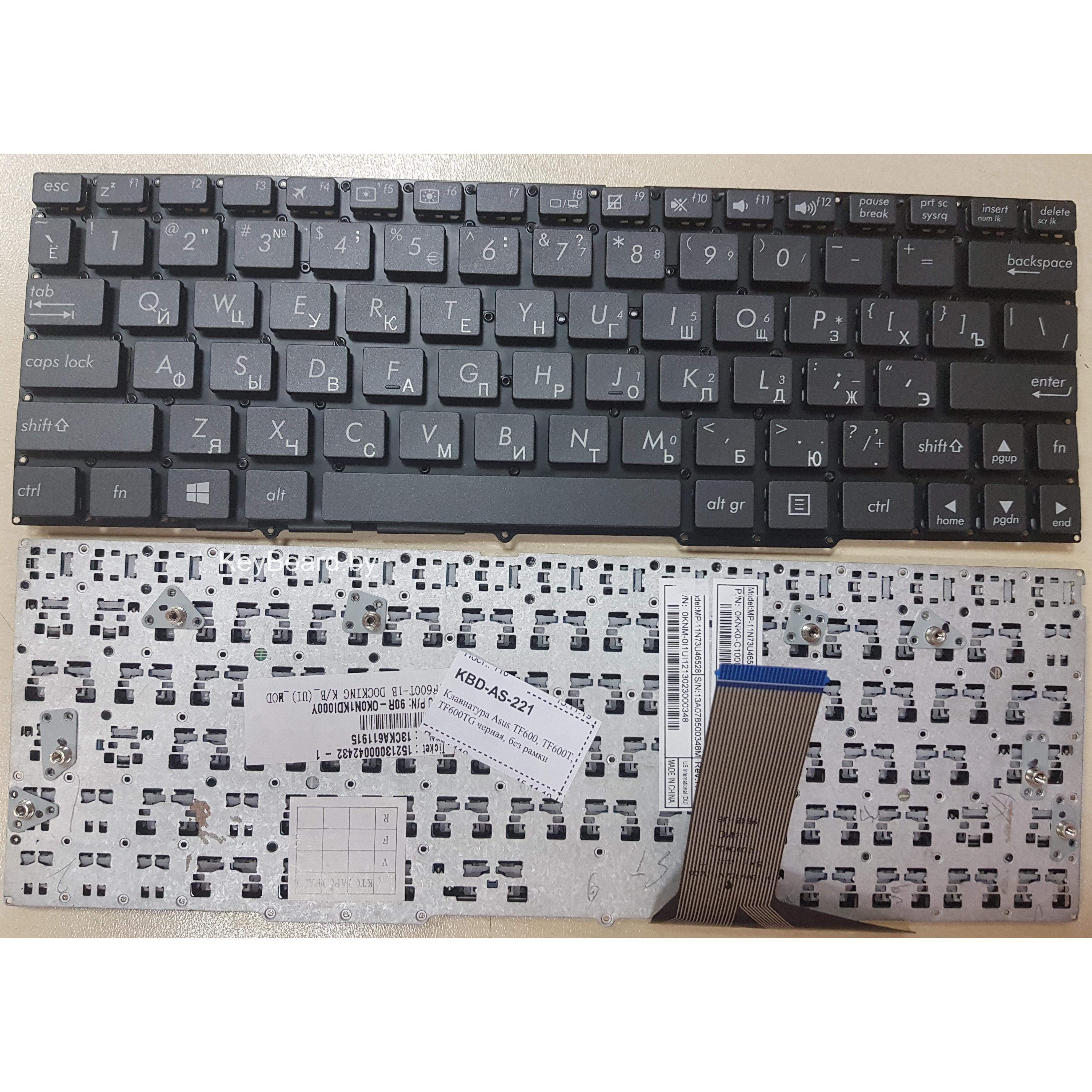 Клавиатура для ноутбука asus tf600, tf600t, tf600tg черная, без рамки