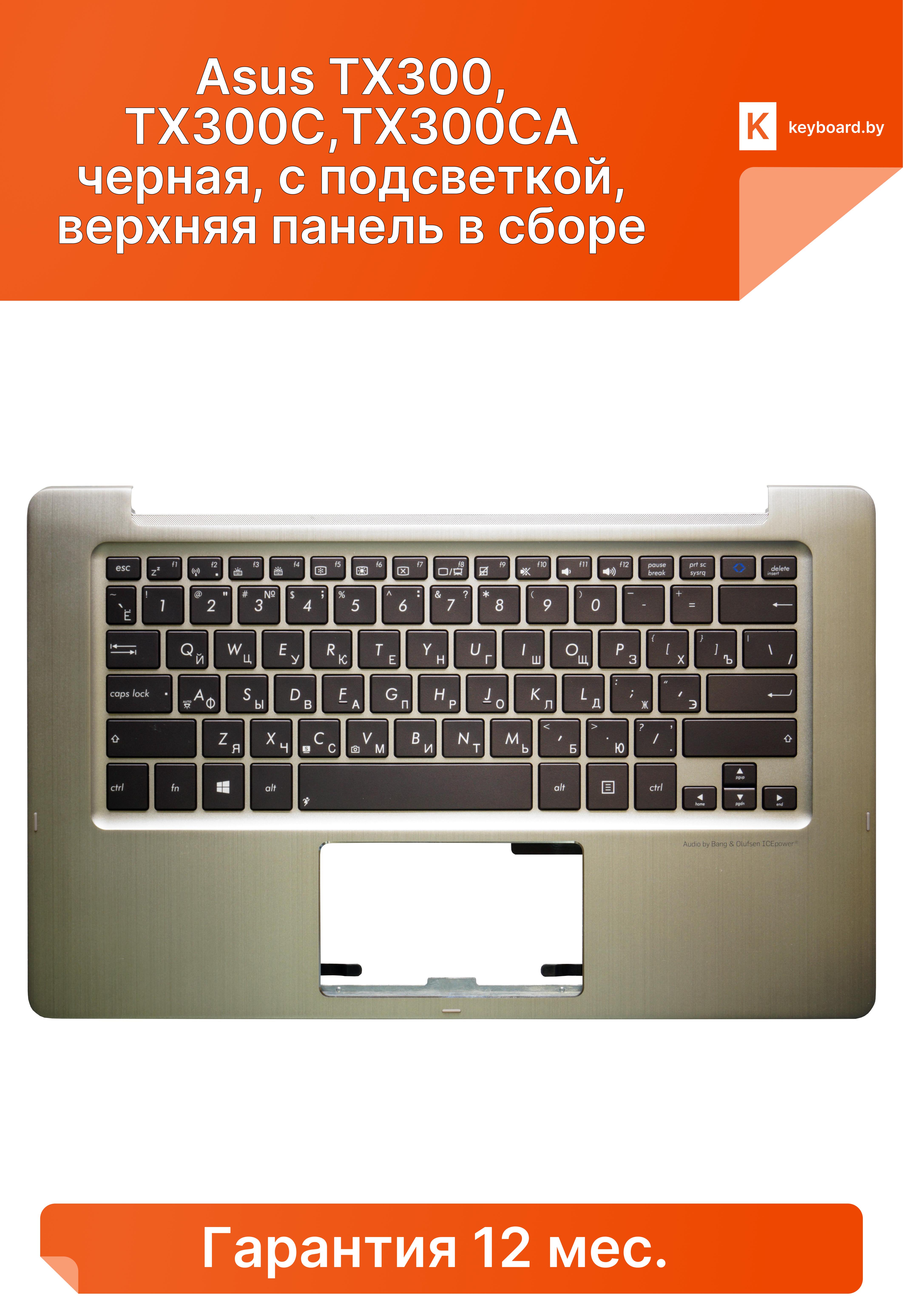 Клавиатура для ноутбука asus tx300, tx300c,tx300ca черная, с подсветкой, верхняя панель в сборе